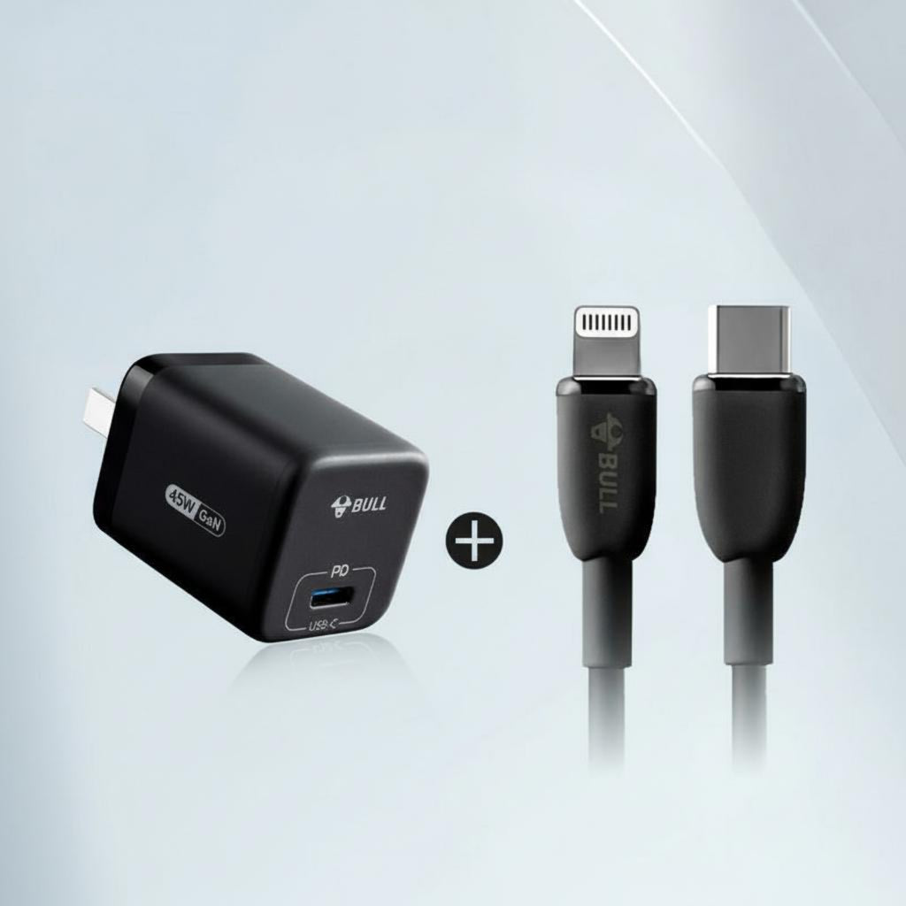GaN 45W Fast Charging, Foldable Plug, Universal Serial Bus-C PD, Compatible with Smartphones and iPad Black +1m C to L Cable
