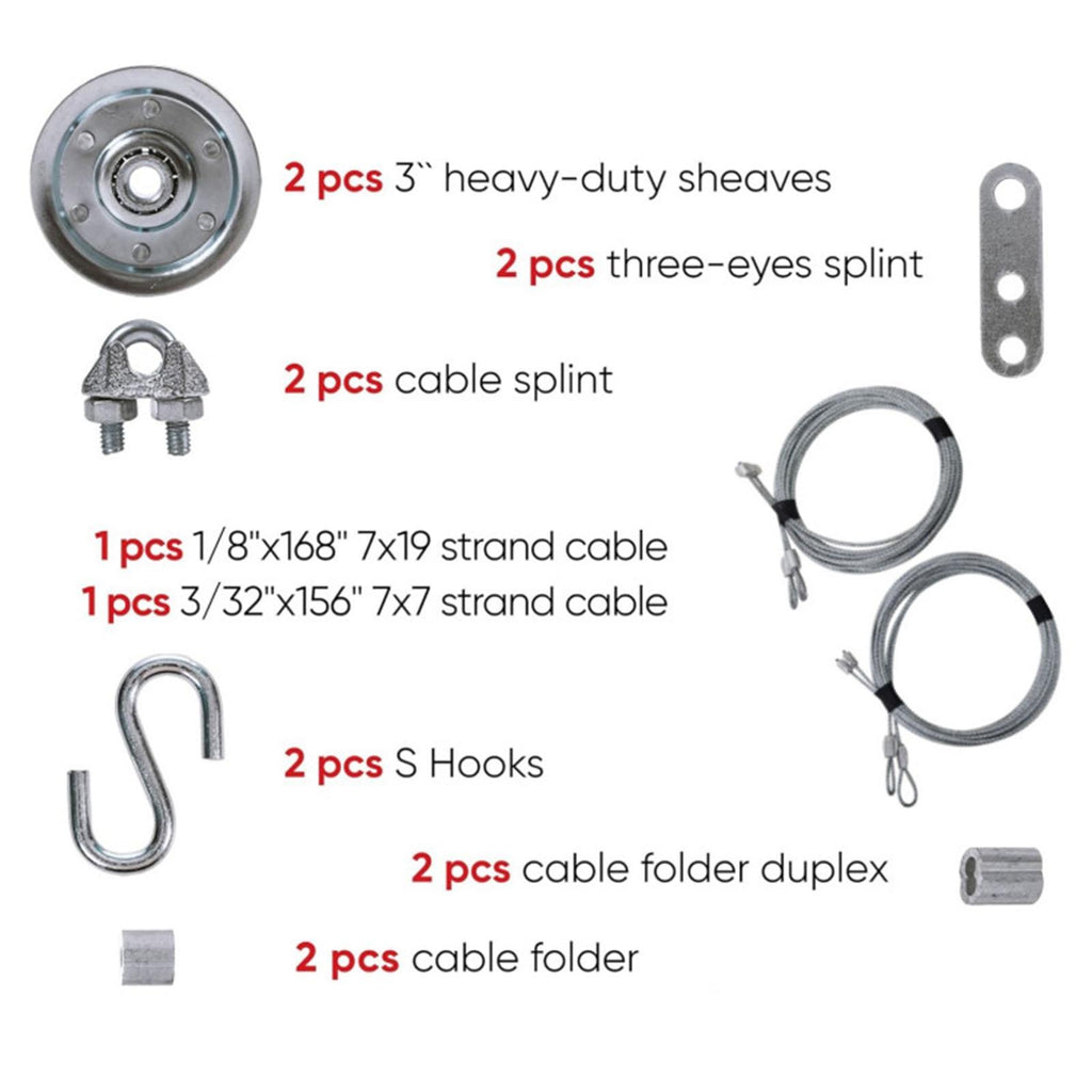 Maxbell Garage Door Cable and Pulley Set High Performance Galvanized Steel Accessory