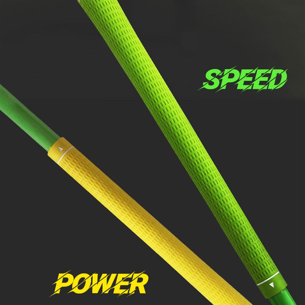 【Double Handle Design】: The golf swing training stick green handle is lightweight, promoting quick swings to enhance speed, freedom of movement, and directional control. The heavier yellow handle aids in muscle training, boosting strength and providing a lighter feel during actual games to improve range