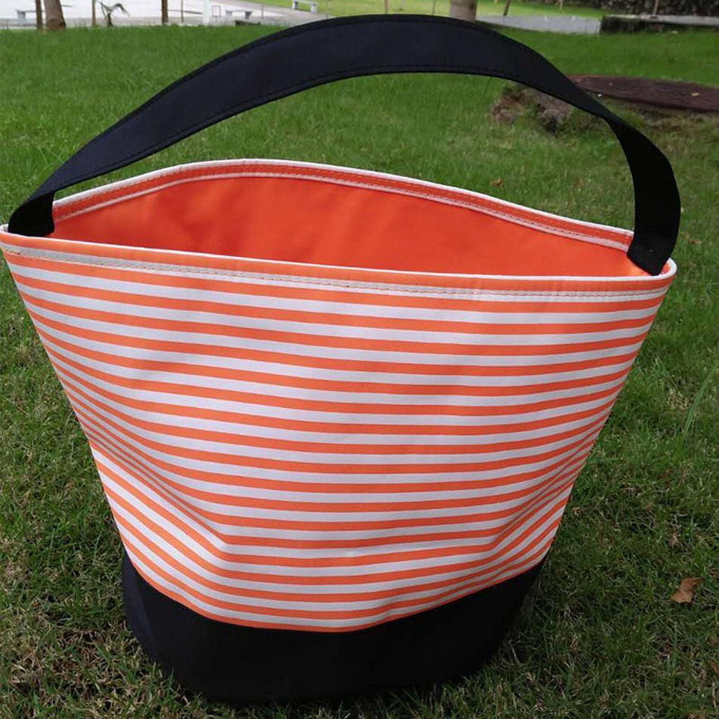 Maxbell Halloween Candy Basket Empty Halloween Decoration Lightweight Storage Basket Orange stripes