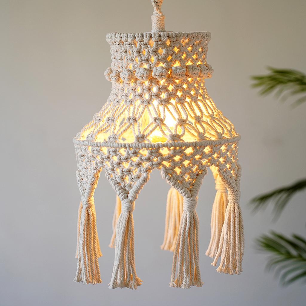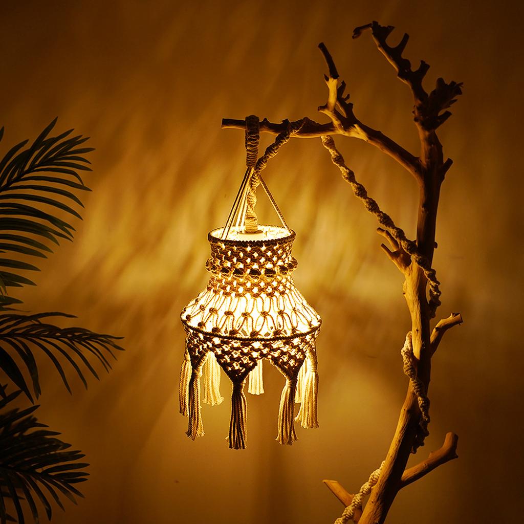Maxbell Maxbell Hand-knitted Macrame Lamp Shade Boho Hanging Light Cover Decor Lampshade