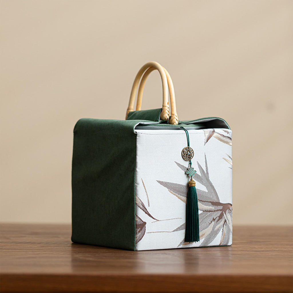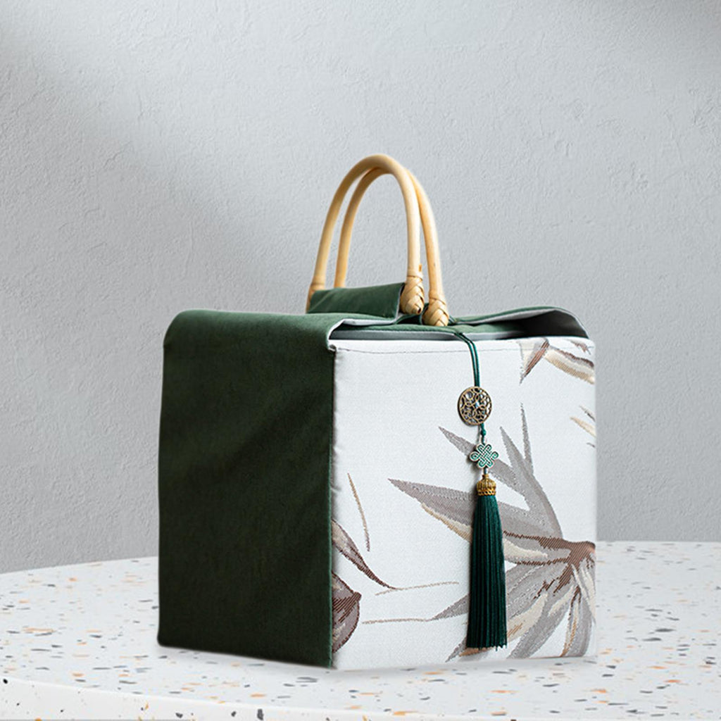 【Delicate and Textured】: This candy box features a sophisticated design with bamboo handle and embroidery, adding delicate to any occasion