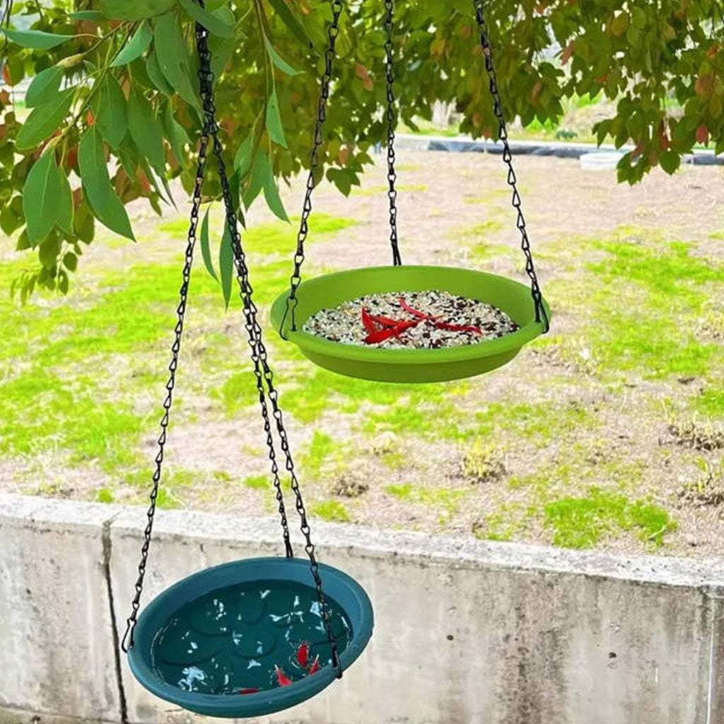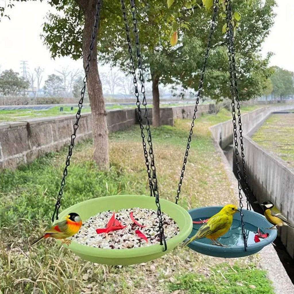 【Material】 : This hanging bird bath is made of PP material, which is sturdy, capable of withstanding various weather conditions. It is rustproof and easy to clean and refill with food