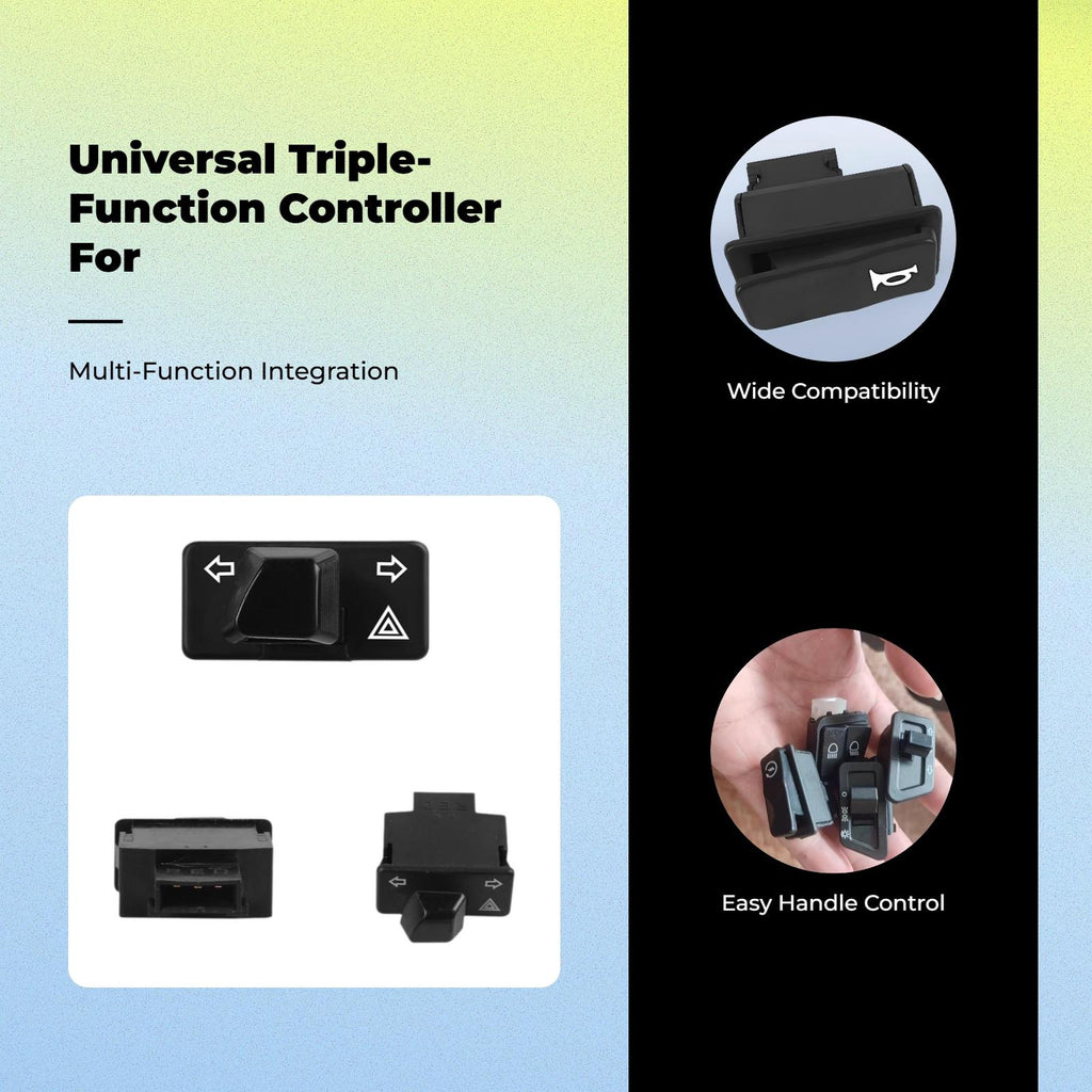 【Multifunctional Control Unit】This control integrates horn and turn marker functions into a single small unit, suitable for motorcycles. With universal compatibility for 22mm handlebars, it ensures easy installation on various type.【sturdy Waterproof Design】Featuring IPX4 waterproof and a retardant sturdy copper central component, this unit is built for all-weather protection against rain, ice, and debris—perfect for outdoor use.【Userintuitive Buttons】The ergonomic button layout allows for quick and easy activation of the horn, lights, and turn indicators, enhancing the convenience and of your ride.【Wide electronic Compatibility】Supports 12-72V systems, making it compatible with most electric bikes and motorcycles. The universal design accommodates both port and right handlebar installations.【dependable and Practical Accessory】Crafted from high-quality materials for durability and dependable performance, this control is a practical choice for everyday commuting and outdoor adventures.Specification: