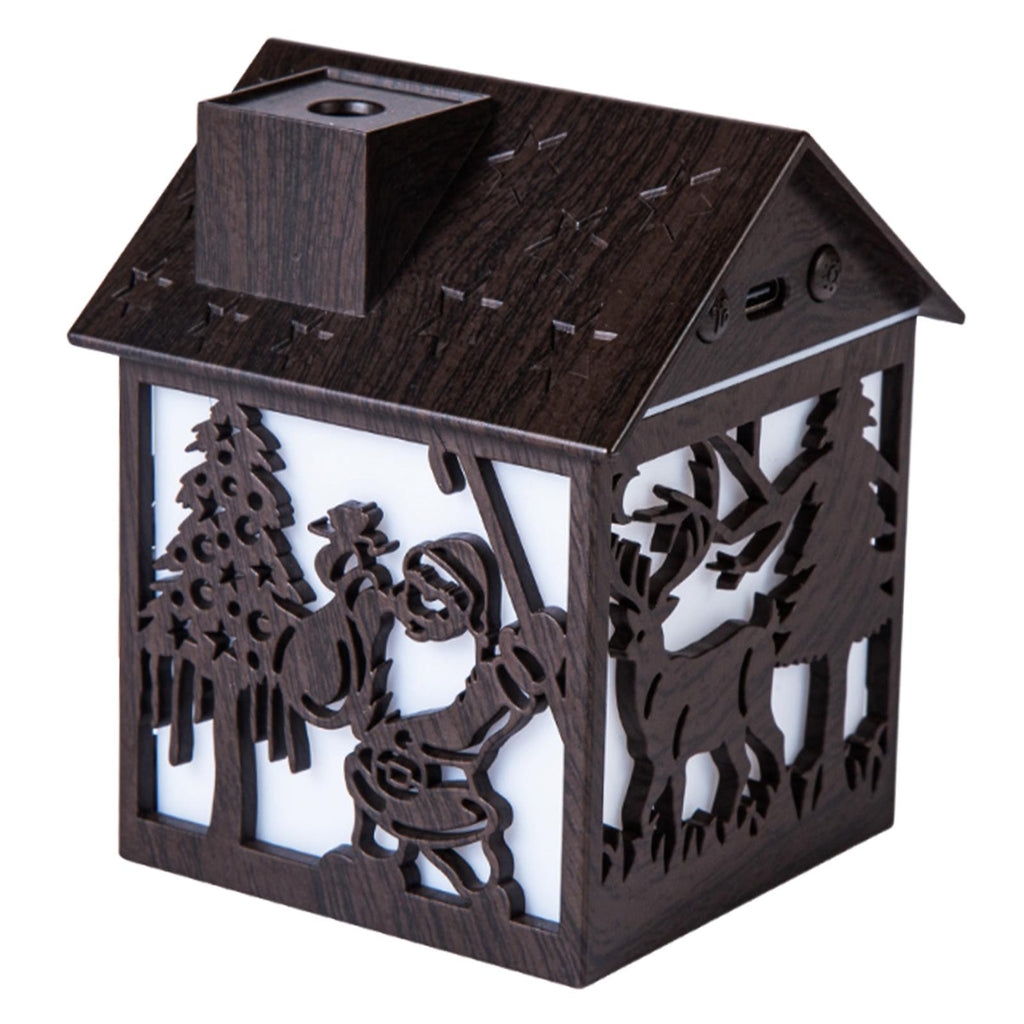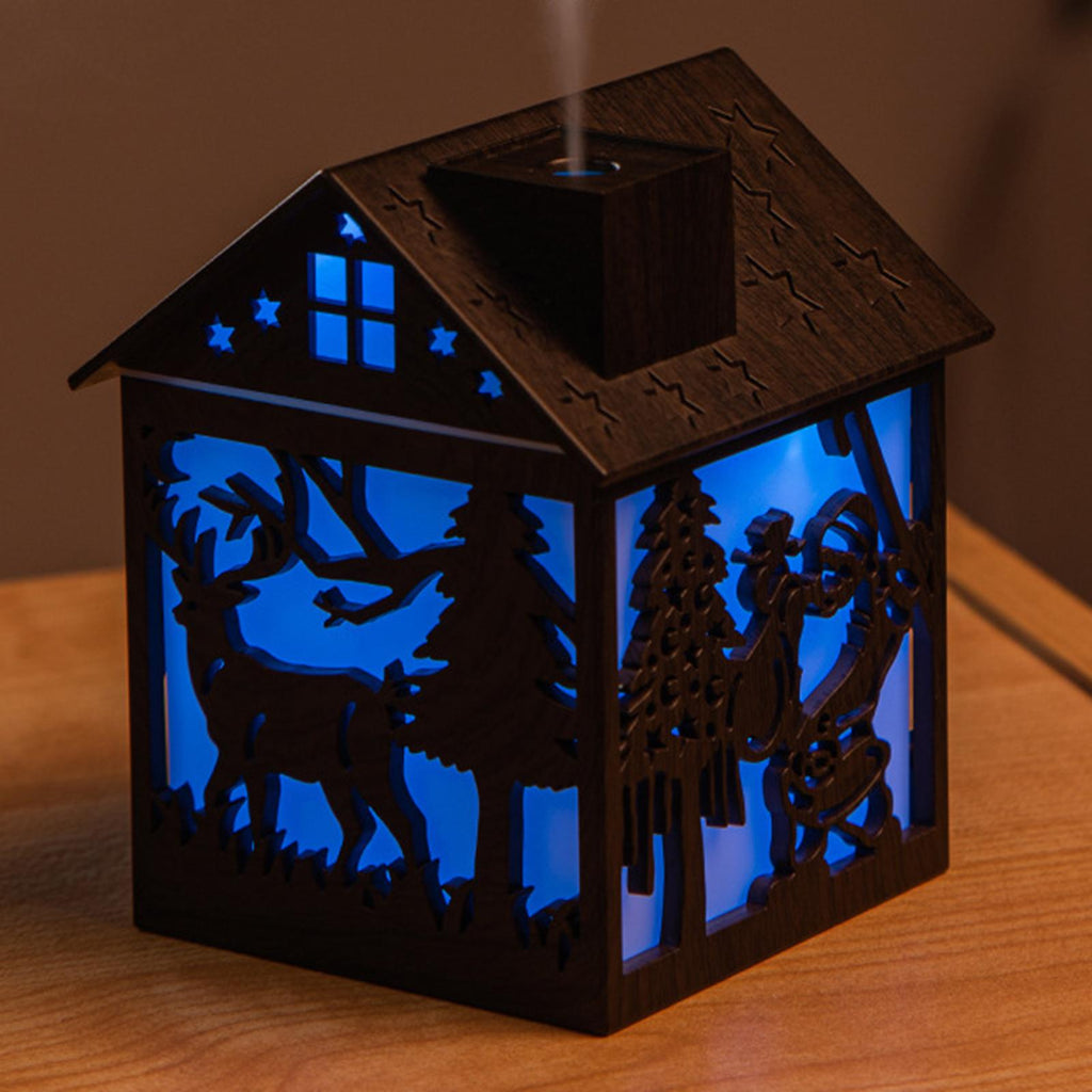 Maxbell House Shaped Humidifier Colorful Lights with Night Light for Hotel Farmhouse Dark wood grain