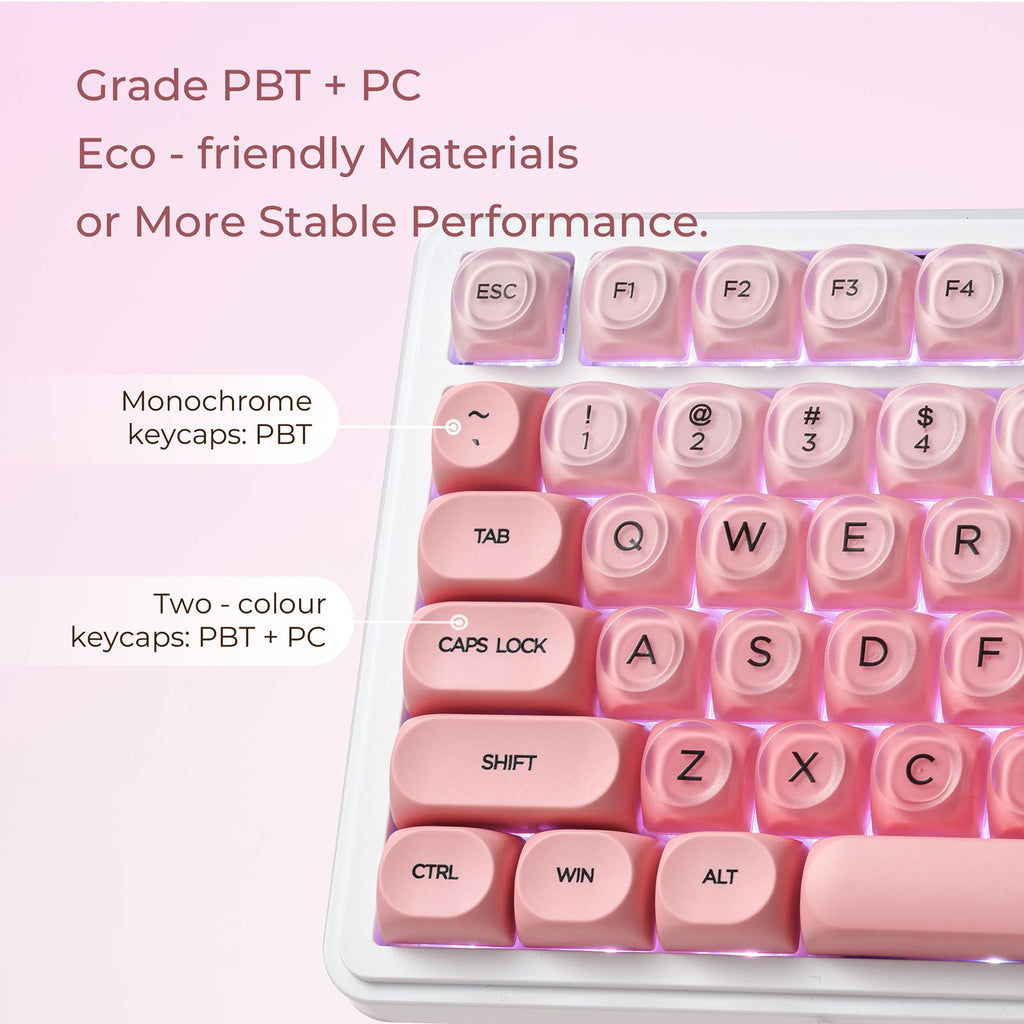 - 【Elegant Frosted Aesthetic】: This keycap set features a unique semi transparent matte finish. This frosted texture beautifully diffuses your keyboard's backlighting