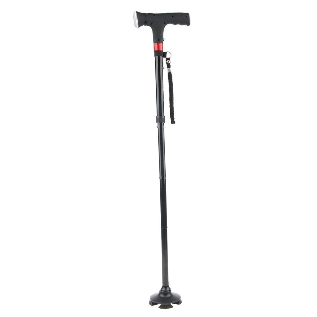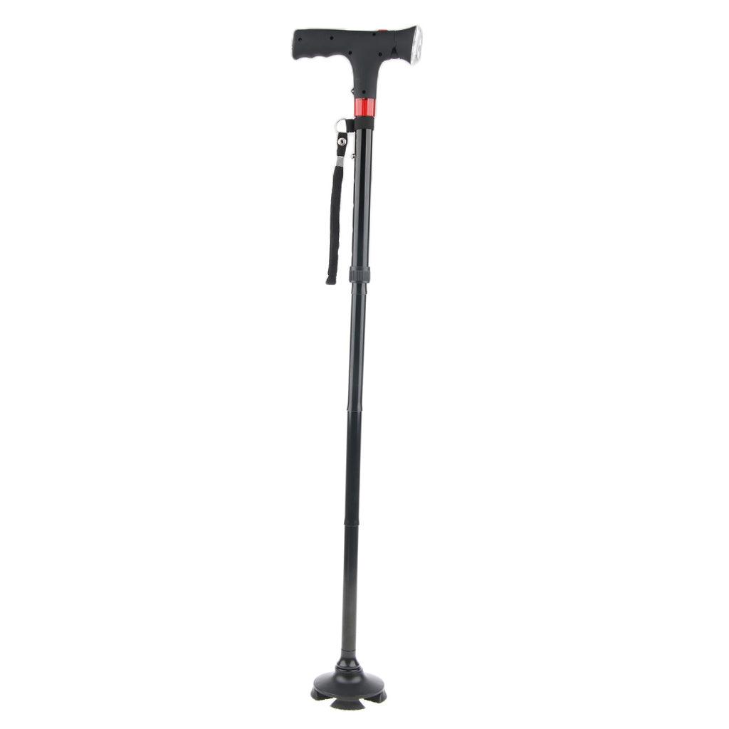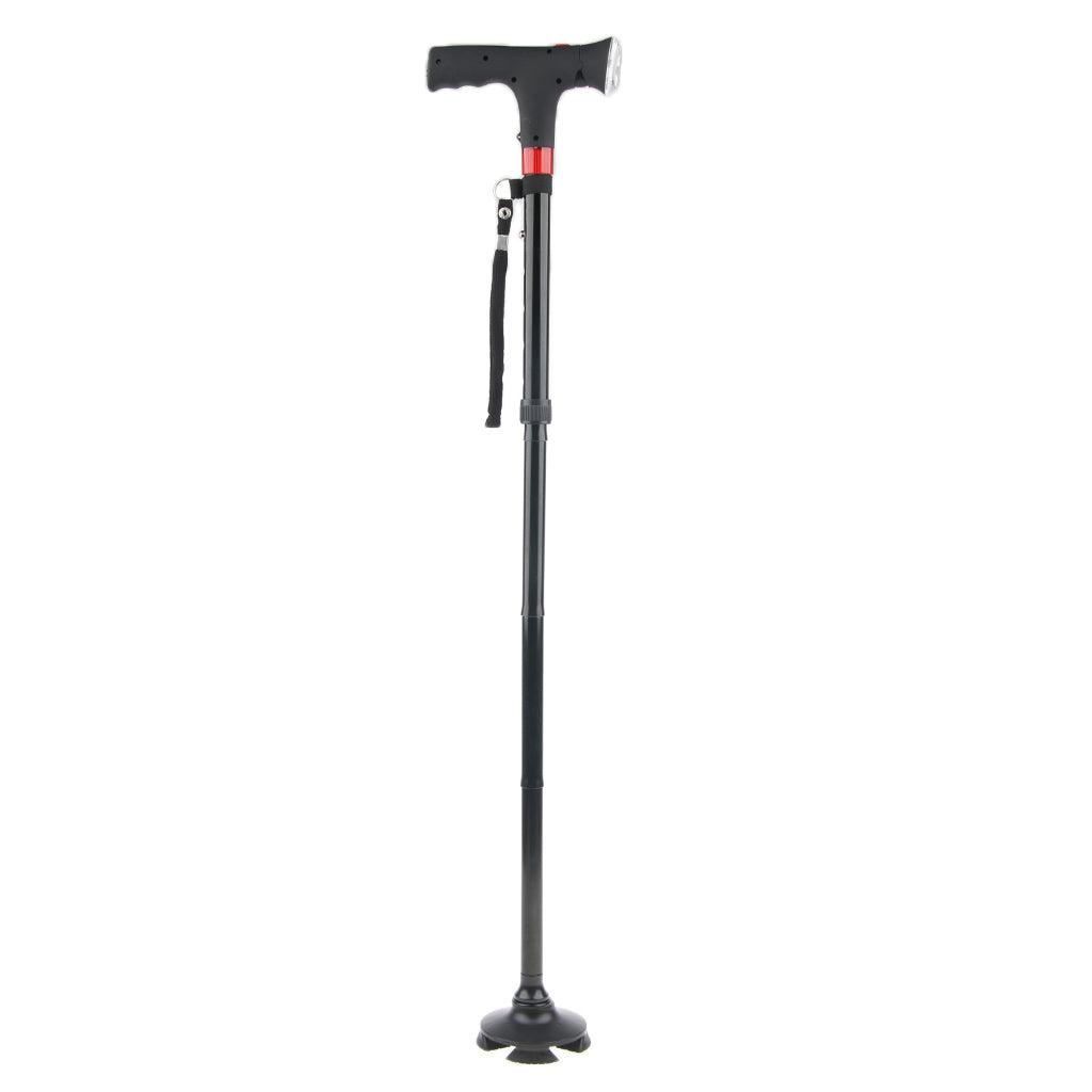 Walking cane with adjustable built in LED lights, providing a safe guide in the dark, 4 pieces of LR44 button battery are required for the LED lights (not included)
