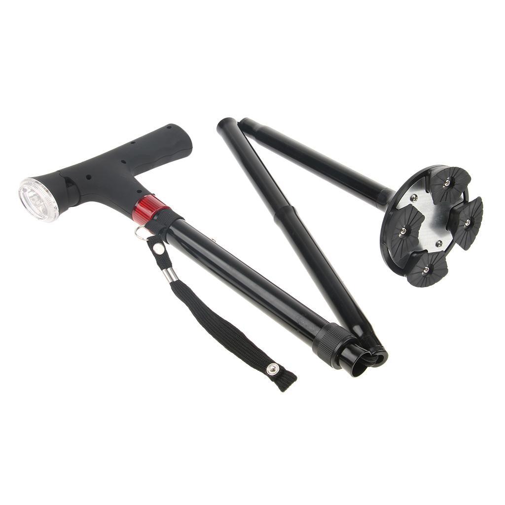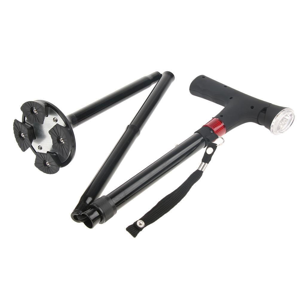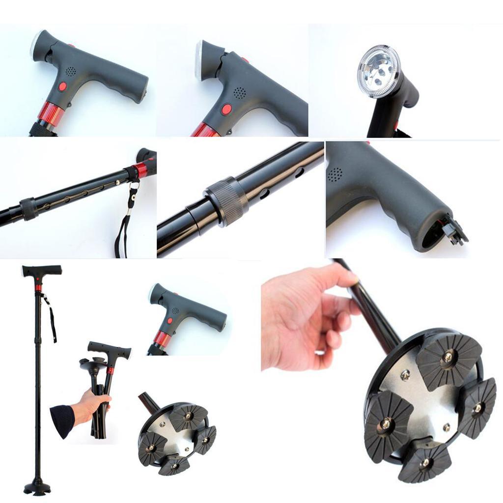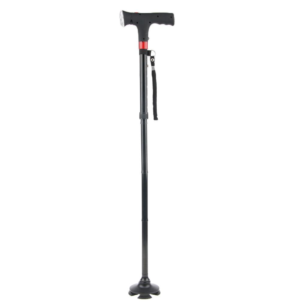 Walking cane with adjustable built in LED lights, providing a safe guide in the dark, 4 pieces of LR44 button battery are required for the LED lights (not included)