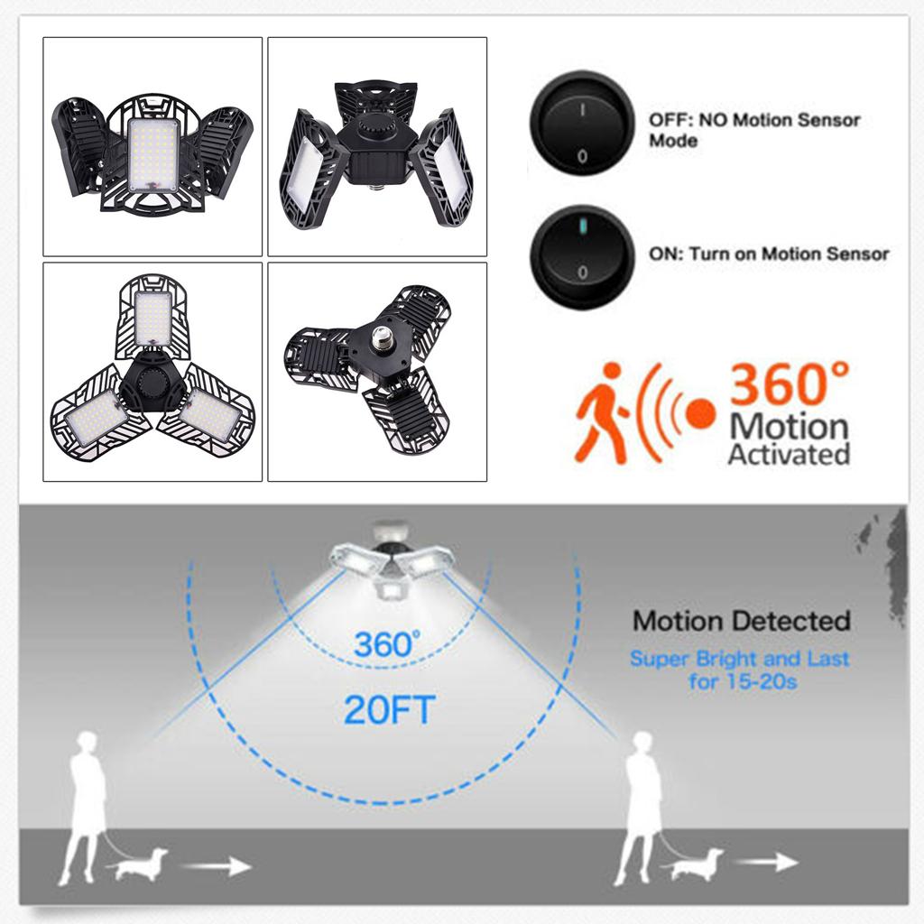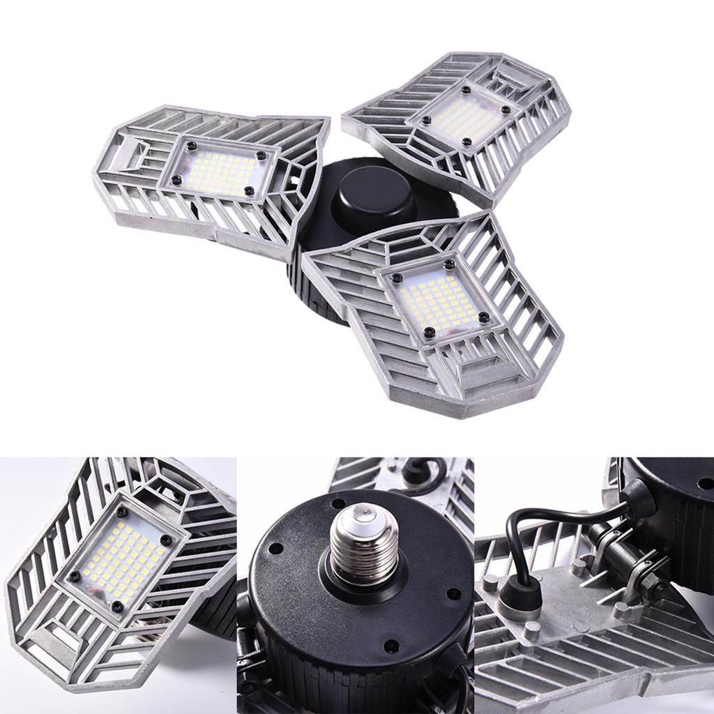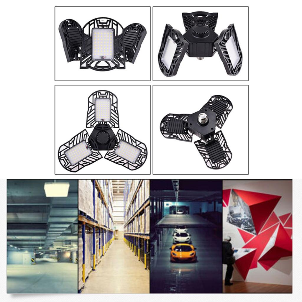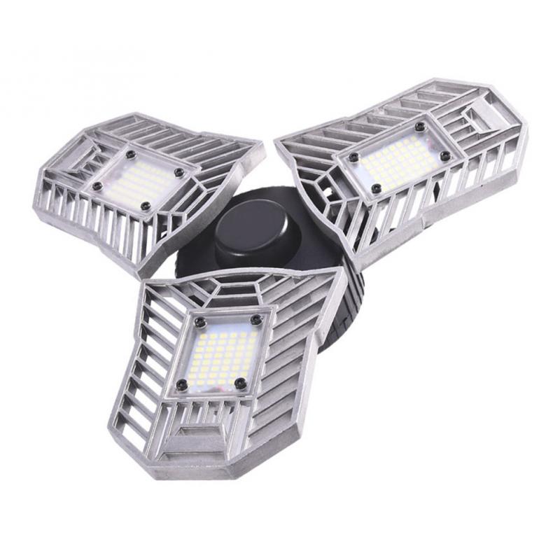 Deformable LED Garage Light. With 3 adjustable aluminum panel heads, each panel can be adjusted 90 degree so that this can light cover about 360 °area.