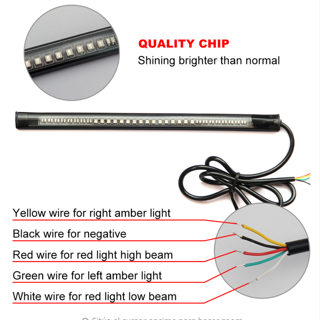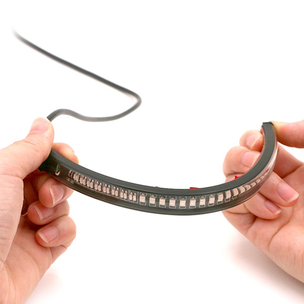 48 LEDs (32-3014-Red-SMD + 16-2835-Amber-SMD); Ultra thin, Flexible rubber - Easy to mount to curved fenders or installed in between the gap and virtually invisible; approx.8inch (20cm); Power Cable Length:45cm;