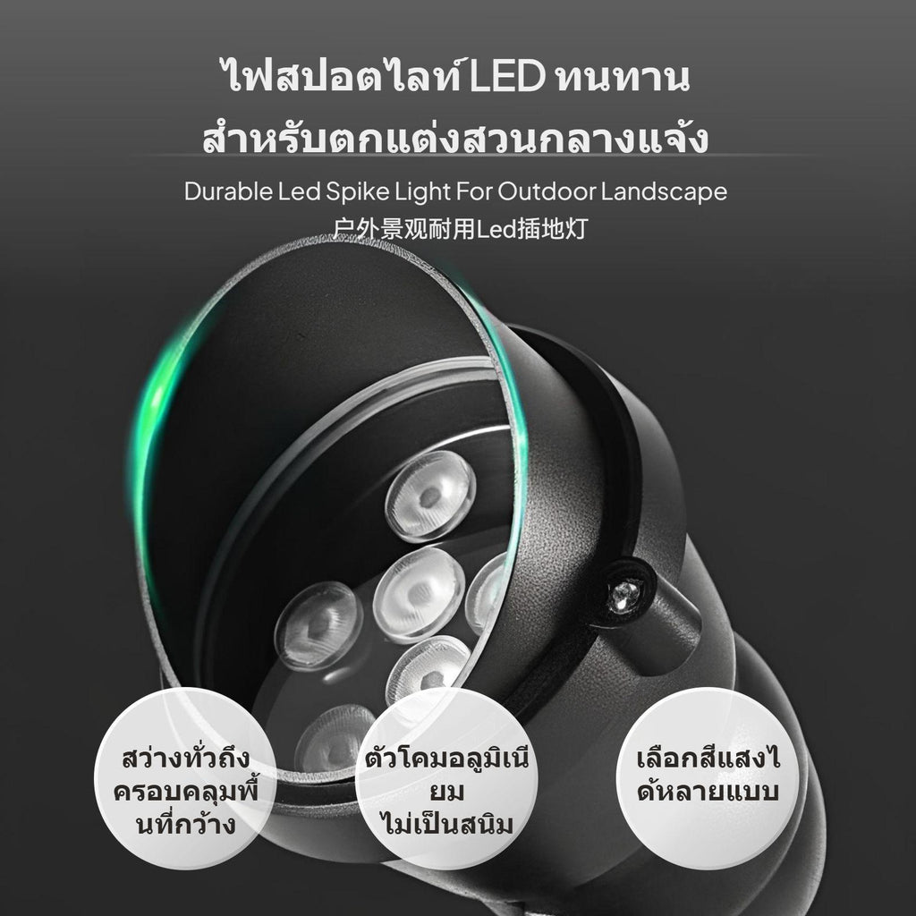 【light-emitting diode投射灯多场景照明】เหมาะสำหรับสวน, ต้นไม้, ลานบ้าน, และภูมิทัศน์กลางแจ้ง ให้แสงสว่างสม่ำเสมอและประหยัดพลังงานด้วยชิป light-emitting diode คุณภาพสูง【วัสดุแข็งแรงทนทาน】ตัวโคมทำจากอลูมิเนียมหล่อแข็งและกระจกนิรภัย ทนต่อการกัดกร่อนและสนิม ใช้งานได้ยาวนานในทุกสภาพอากาศ【กันน้ำระดับ IP65】ออกแบบมาเพื่อใช้งานกลางแจ้งโดยเฉพาะ ป้องกันน้ำและฝุ่นได้อย่างมีประสิทธิภาพ เหมาะกับฤดูฝนและสภาพแวดล้อมเปียกชื้น【ติดตั้งง่ายและปรับมุมได้】ดีไซน์เสียบลงดิน ติดตั้งสะดวก พร้อมหัวโคมปรับมุมได้ตามต้องการ เพื่อการส่องสว่างที่แม่นยำ【หลายขนาดและสีแสง】มีให้เลือกทั้งขนาดเล็กและใหญ่ กำลังไฟ 3W-36W พร้อมแสงขาว, แสงวอร์มไวท์ และแสงเปลี่ยนสีอัตโนมัติ ตอบโจทย์ทุกบรรยากาศSpecification: