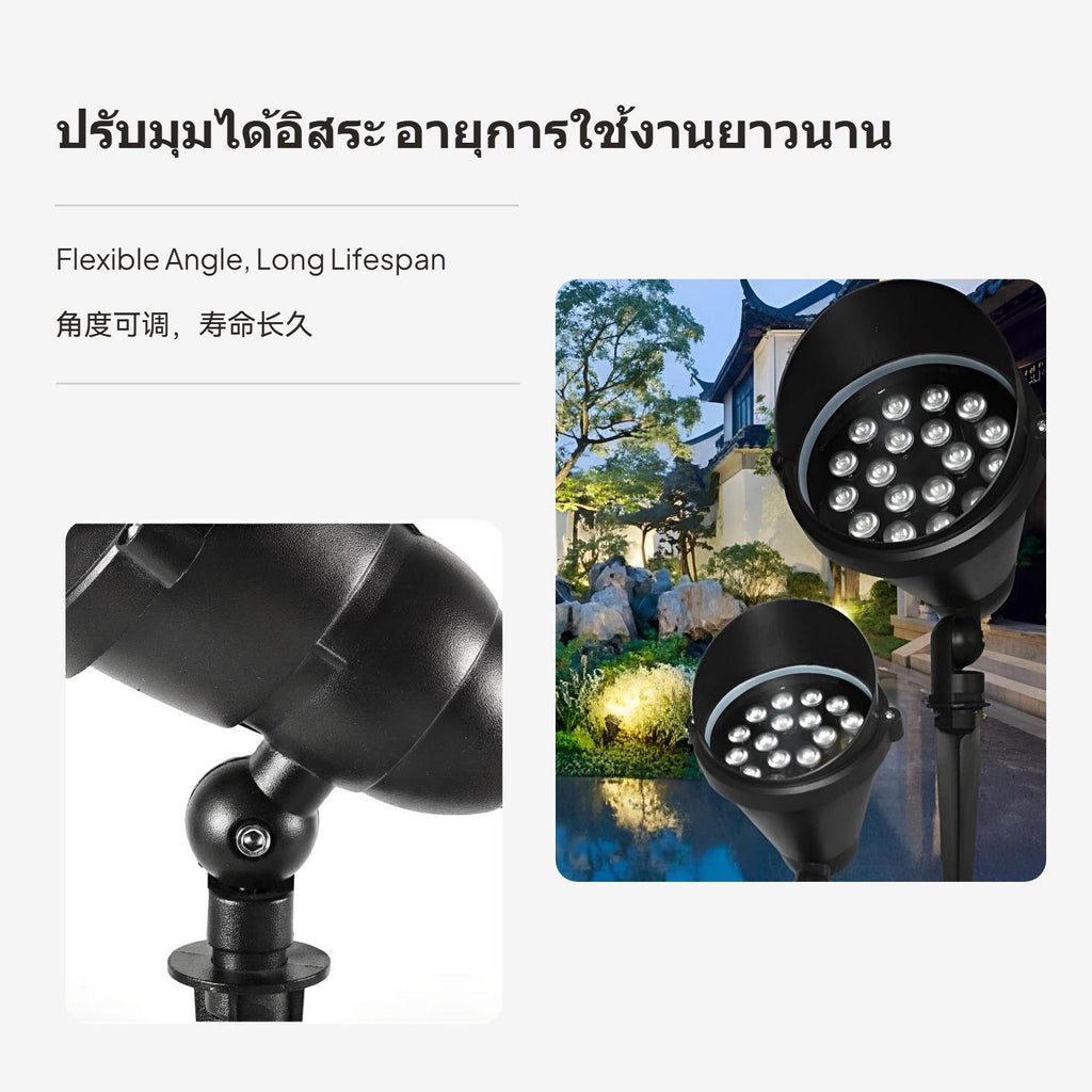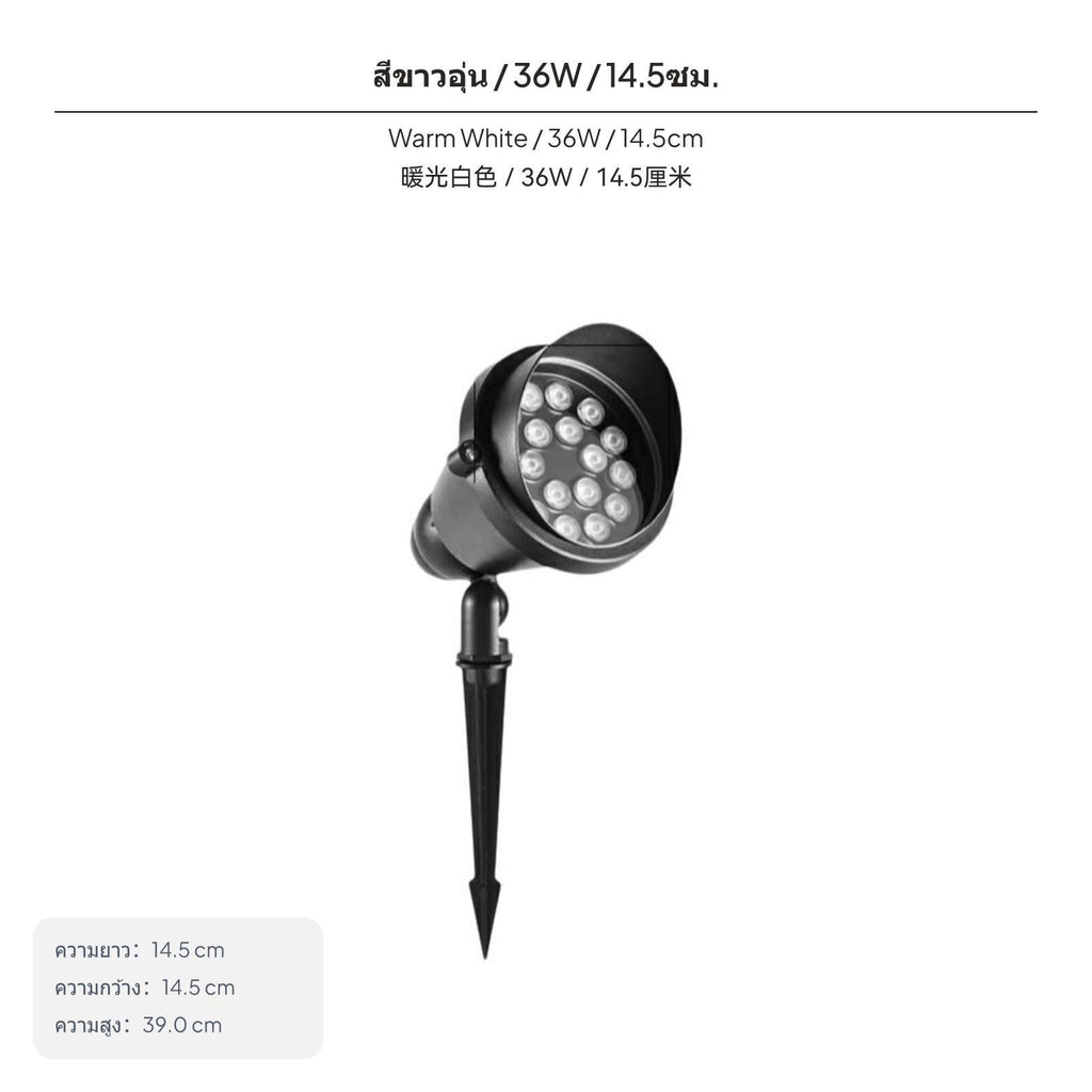【light-emitting diode投射灯多场景照明】เหมาะสำหรับสวน, ต้นไม้, ลานบ้าน, และภูมิทัศน์กลางแจ้ง ให้แสงสว่างสม่ำเสมอและประหยัดพลังงานด้วยชิป light-emitting diode คุณภาพสูง【วัสดุแข็งแรงทนทาน】ตัวโคมทำจากอลูมิเนียมหล่อแข็งและกระจกนิรภัย ทนต่อการกัดกร่อนและสนิม ใช้งานได้ยาวนานในทุกสภาพอากาศ【กันน้ำระดับ IP65】ออกแบบมาเพื่อใช้งานกลางแจ้งโดยเฉพาะ ป้องกันน้ำและฝุ่นได้อย่างมีประสิทธิภาพ เหมาะกับฤดูฝนและสภาพแวดล้อมเปียกชื้น【ติดตั้งง่ายและปรับมุมได้】ดีไซน์เสียบลงดิน ติดตั้งสะดวก พร้อมหัวโคมปรับมุมได้ตามต้องการ เพื่อการส่องสว่างที่แม่นยำ【หลายขนาดและสีแสง】มีให้เลือกทั้งขนาดเล็กและใหญ่ กำลังไฟ 3W-36W พร้อมแสงขาว, แสงวอร์มไวท์ และแสงเปลี่ยนสีอัตโนมัติ ตอบโจทย์ทุกบรรยากาศSpecification: