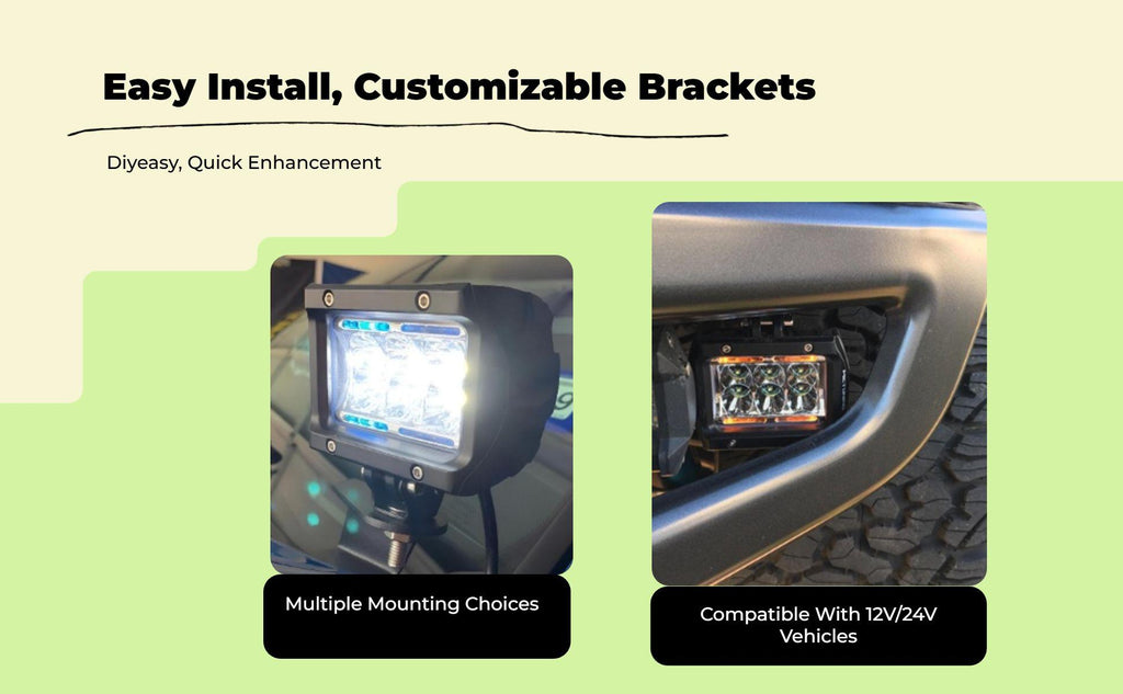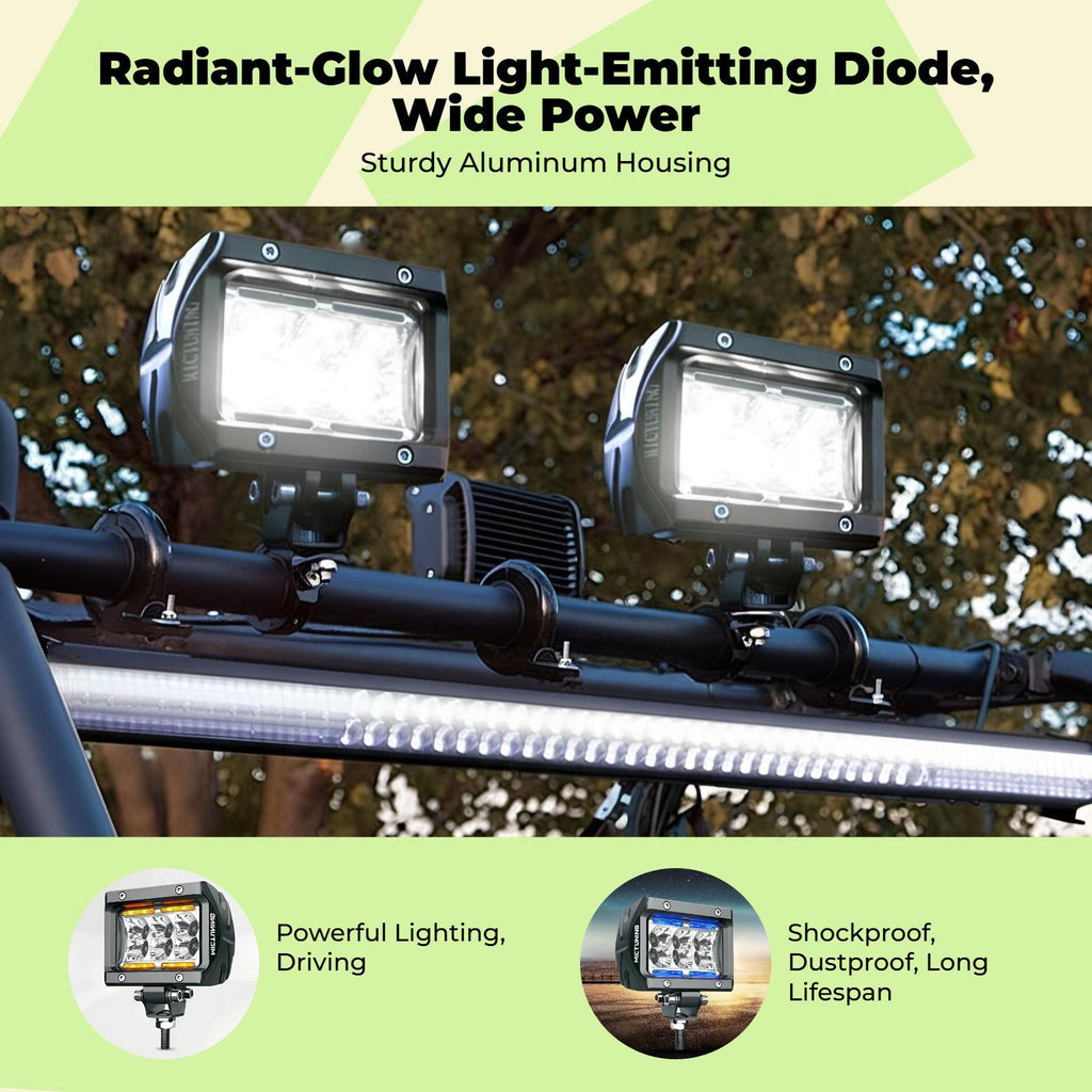 [high-intensity light-emitting diode All-Terrain Light Unit] Improve visibility with this high-intensity light-emitting diode unit, perfect for ATVs, vehicles, SUVs, and pickups. The powerful lighting delivers a clear view, even in fog, rain, or ice. [Waterproof and sturdy Construction] Featuring IP68 waterproof and a die-cast aluminum alloy housing, this light unit is built to handle tough outdoor environments, making it perfect for remotetrail adventures and job sites. [Versatile Mounting and Adjustable Direction] With adjustable mounting brackets and 360-degree rotation, this auxiliary light can easily be installight-emitting diode on the roof, A-pillar, or exterior of various vehicles for personalized lighting angles. [Long Lifespan and Vibration durability] Engineered for over 50,000 hours of use, the light-emitting diode unit delivers dependable performance and vibration durability, ensuring durability for commercial and agricultural applications. [Wide Application and Practical Design] perfect for remotetrail lighting, equipment lighting, camping, construction, and garage use, this light-emitting diode unit remoteers practicality and value for a range of needs.Specification: