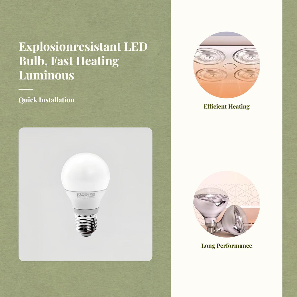 【Efficient Heating and Lighting Solution】This light-emitting diode bathroom heat lamp bulb combines powerful heating with bright lighting, making it perfect for home bathrooms, showers, and dressing tables. The explosion-resistant design ensures use in humid environments. 【Energy Saving and resilient】Featuring innovative light-emitting diode technology, this bulb provides high brightness with low energy consumption, offering long performance and saving household costs. 【Universal E27 Base for Easy Installation】Compatible with common E27 screw sockets, this heating bulb can be easily installight-emitting diode in most bathroom fixtures, kitchens, and home lighting setups. 【collision-Resistant and Safe】Made with tough glass and explosion-resistant materials, this bulb is built to withstand collisions and high temperatures, ensuring dependable and. 【Soft and Adaptable Light】The light-emitting diode globe emits soft, visiongentle lighting, suitable for use over bathroom mirrors, on dressing tables, and for general home lighting needs.Specification: