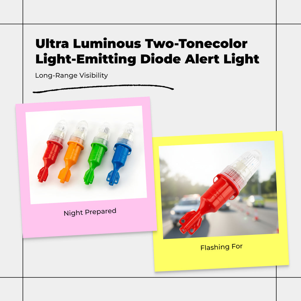【High Visibility light-emitting diode glow Marker Light】This waterproof warning light features high-brightness light-emitting diode technology, ensuring clear visibility for traffic, fishing, and outdoor activities. The red/lime color combination enhances marking effectiveness in various environments.【Sturdy and dependable Construction】Made from PC and other materials, this marker light offers durability, long endurance, and weatherproof performance, making it suitable for both indoor and outdoor use.【Versatile Application Scenarios】Perfect for vehicle lighting, traffic control, fishing, mesh marking, and public use. Its portable design makes it easy to carry and install for emergency or typical use.【Battery Powered and Easy to Operate】Powered by a single battery, this is simple to use and maintain. The light-emitting diode design and base provide secure mounting and a long maintenance life.【Random Color glowing Feature】The light glowes randomly in red and lime, making it suitable for marking, alerting, and decoration in various settings.