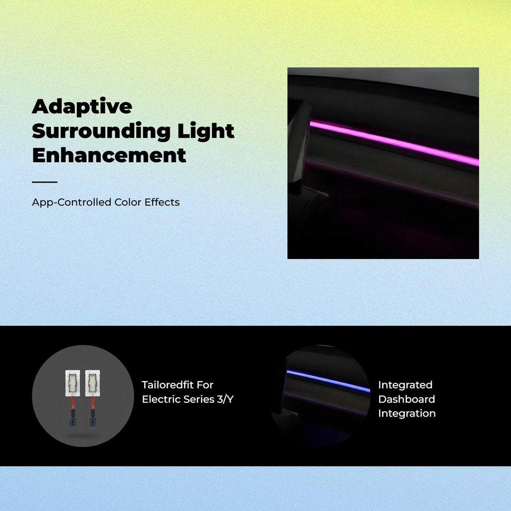 [Light-Emitting Diode Ambient Lighting Strip Enhances Electric Vehicle Interior] enhance your electric vehicle sedan or SUV with this RGB light strip ambient lighting strip, designed for dashboard and center console decoration. Create a lively atmosphere for highway trips, everyday commutes, or relaxing drives. [Multiple hues Adjustable Brightness] Enjoy customizable lighting with various color modes and adjustable brightness. Easily control the lights via the app for a personalized mood and atmosphere. [Quick Installation & Plug-and-Play] This light strip strip offers easy, plug-and-play installation. Suitable for air vent and dashboard placement, it integrates seamlessly into your car’s interior. [Music Audio-Sync Modes] Activate music rhythm and audio sync modes to coordinate lighting effects with your favorite songs, enhancing the relaxing and fun atmosphere while driving. [High Brightness & Practical Design] Made from high-quality materials, this ambient light strip delivers strong brightness and stylish decoration, perfect for car lighting lovers.