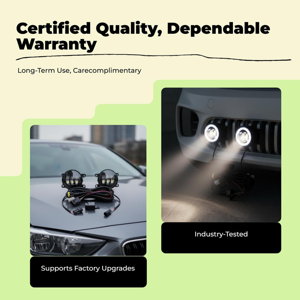 【Enhanced Visibility and Safety】light-emitting diode fog lights and daytime daytime lights provide superior lighting for vehicles, enhancing driving safety in foggy and low-visibility conditions.【Double Projection Lens Design】Featuring a double projection lens, these fog lights deliver both high and low light functions, ensuring sharp visibility and adaptable lighting for various driving situations.【robust and Practical】Crafted from premium PC and aluminum materials, these lights are designed for longenduring performance and exceptional durability against the weather, making these lights perfect for frequent driving and vehicle upgrades.【Easy Installation and Replacement】Specially designed for your vehicle model, these fog lights are easy to install and replace directly, reducing both time and maintenance costs.【Stylish Vehicle Enhancement】With a modern appearance and clear lens, these light-emitting diode fog lights not only enhance your vehicle’s exterior but also offer practical lighting advantages.Specification: