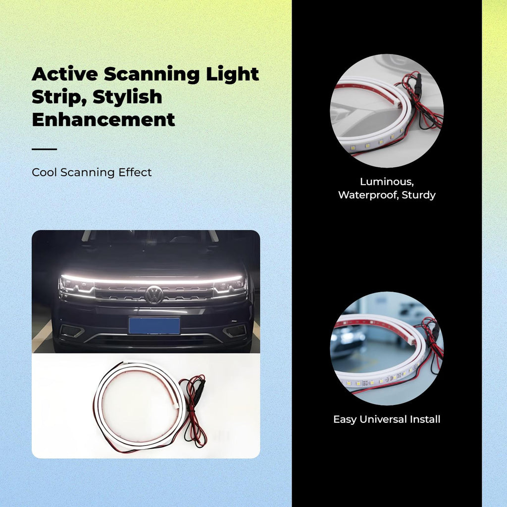 [light-emitting diode Hood Light Strip for Car Decoration] Enhance your vehicle’s exterior with this universal light-emitting diode hood light strip, featuring animated scanning and a waterproof design for a stylish look while driving. [Flexible, resilient Silicone Material] Made from soft silicone, this light strip is flexible, weather-resistant, and resilient, making it suitable for various vehicles and easy to install. [Animated Scanning sunlit visibility Running] The animated scanning feature and bright light-emitting diode lights improve visibility and give your vehicle modern appearance, serving as both a sunlit visibility running light and a decorative accent. [Easy Installation & Universal Fit] Designed for simple DIY installation, this hood light strip accommodates most cars and vehicles, making it easy to enhance your vehicle. [Practical & Cost-effective Enhancement] Offering high brightness, durability, and energy performance, this strip is a practical and cost-effective solution for car lovers.Specification: