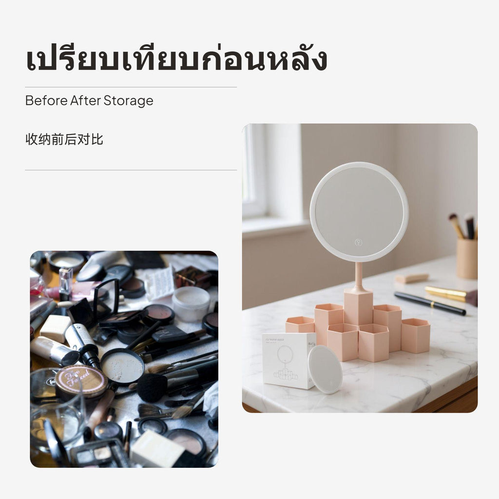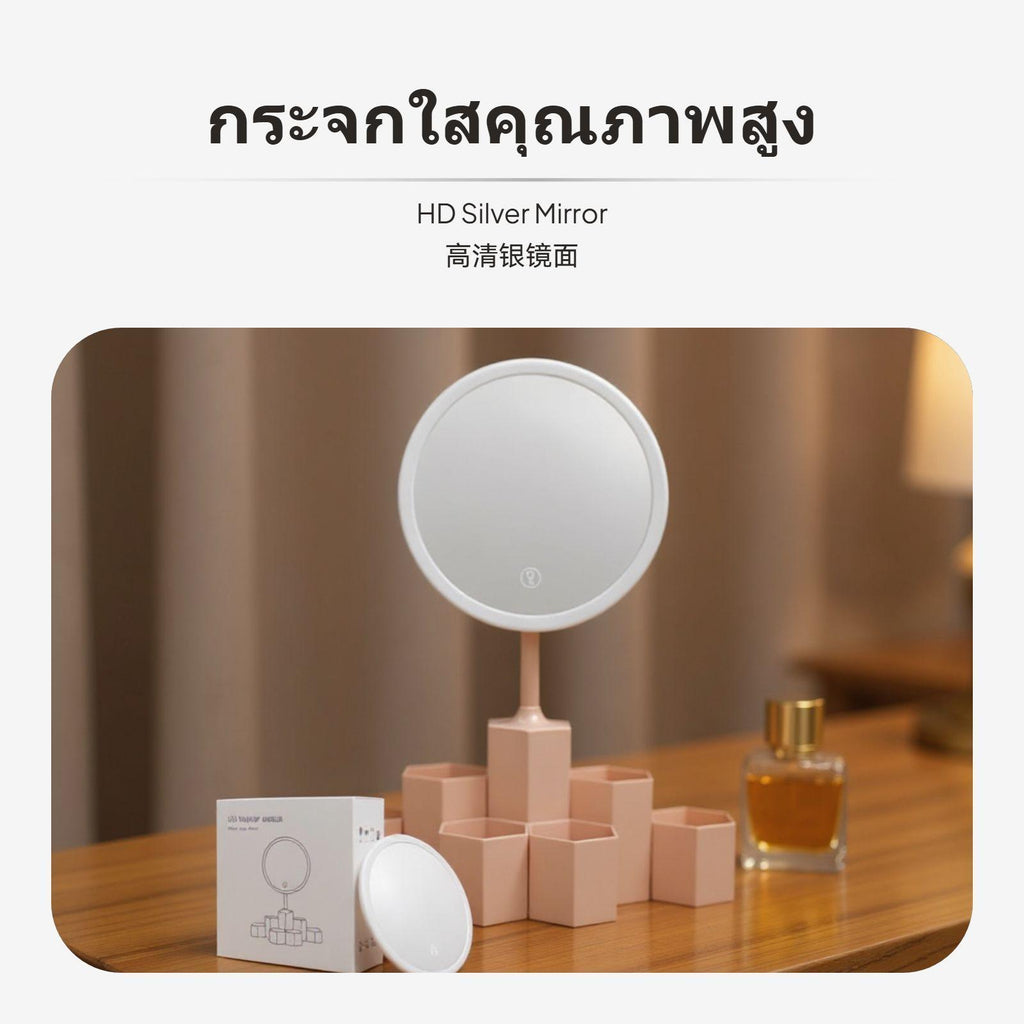 [complete solution Makeup Solution] This illuminated makeup mirror features a highclarity reflective surface, integrated with practical desktop storage that helps keep cosmetics and accessories organized and tidy.[Customizable Lighting lighting setup] Equipped with single or triple color light-emitting diode choices and stepless dimming, you can easily adjust brightness and color temperature for precise makeup application in any environment.[Convenient Universal Serial Bus Rechargeable Design] Built-in rechargeable lithium battery provides extended usability, freeing you from wiring constraints. perfect for mobile use at dorms, dressing tables, or study desks.[Efficient Organization] Multiple compartment storage sections in the base effortlessly organize lipsticks, foundation, brushes, and skincare items—eliminate desktop clutter for a clean cosmetic regimen.[Modern design adaptable Use] Available in elegant ivory, coral, or mint choices, this Nordic-inspired mirror suits students, professionals, and anyone seeking a stylish space-saving makeup solution.Specification: