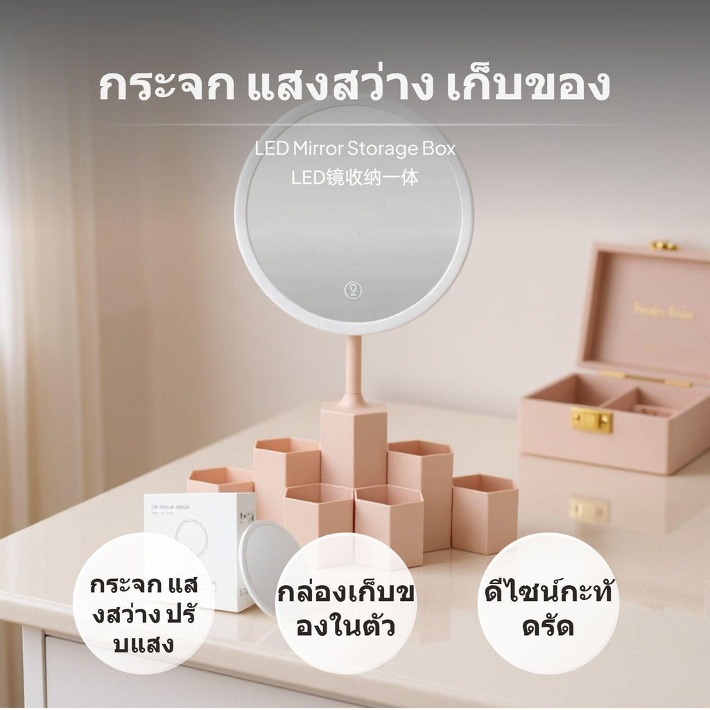 light-emitting diode Makeup Mirror, Desktop Storage Box, Adjustable Light, Universal Charging Port Rechargeable, Dorm Vanity
