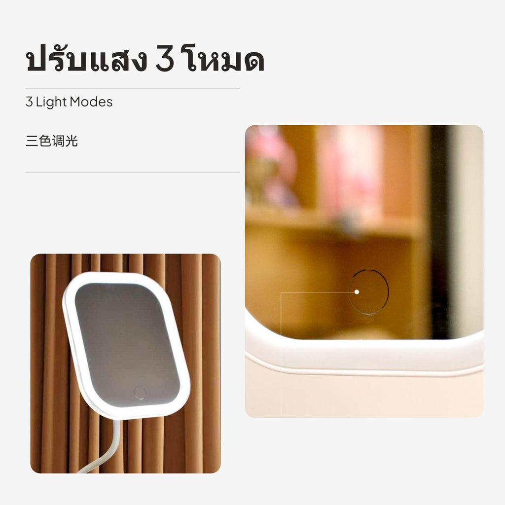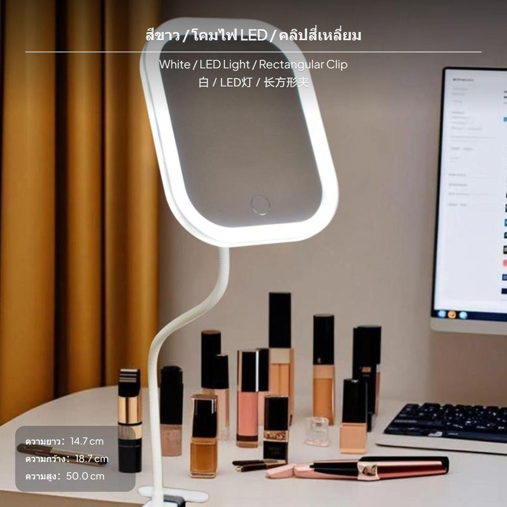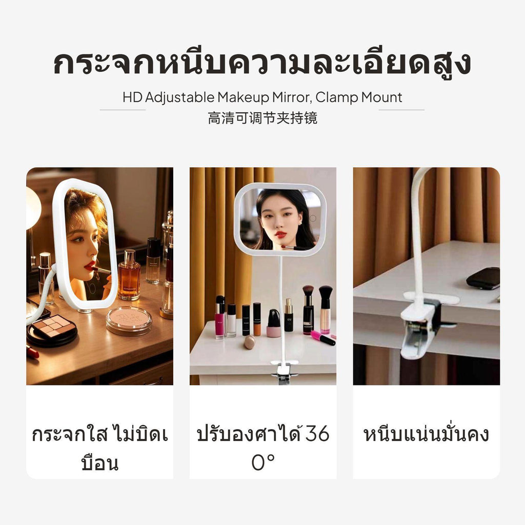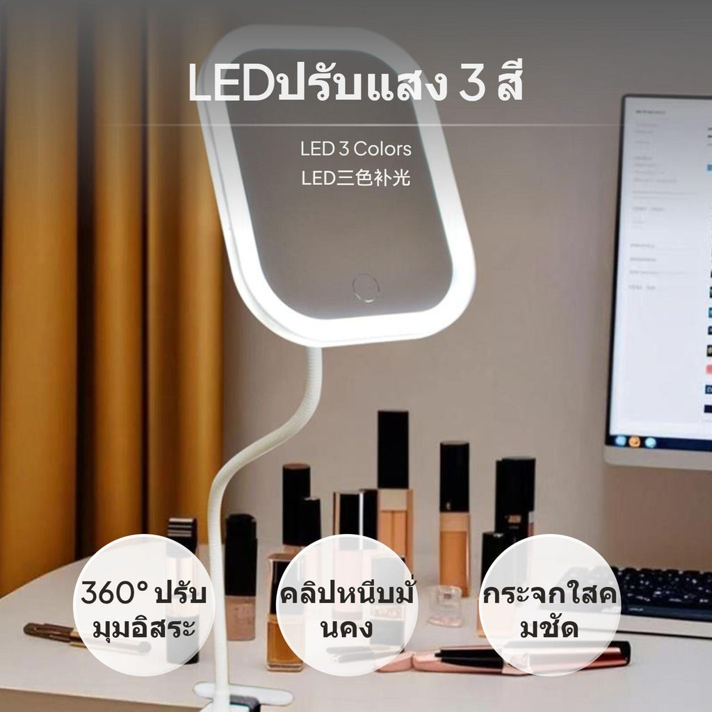 [multi-functional Portable lighted Mirror] This lighted makeup mirror features a highresolution surface and offers 3x/5x magnification, ensuring clear, detailighted makeup application for any regimen.[Adjustable Lighting Effects] Equipped with soft light-emitting diode, the mirror supports three-color light modes (cool, warm, natural) and stepless dimming, allowing you to accurately adjust brightness for perfect lighting at at any moment.[Flexible Design & Multi-Angle Use] The mirror’s 40cm 360° flexible gooseneck and strong fastener base allow easy attachment on desks, bedside tables, or bookshelves, offering customizable angles in both seated and standing positions.[Universal Serial Bus Rechargeable & Cordless Convenience] With a built-in high-capacity battery and Universal Serial Bus charging, this mirror is easy to use at home, in the dorm, office, bedroom, or during travel, freeing you from tangled cords.[Modern design Easy functionality] Available in round or rectangular designs and stylish ivory or coral finishes, the mirror features a simple press button for power, color temperature selection, and brightness adjustment, perfectly matching different decor aesthetics.Specification: