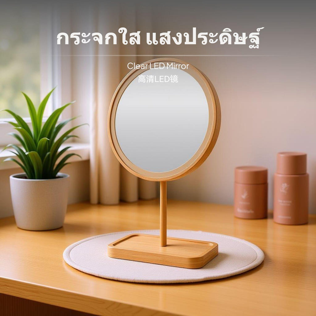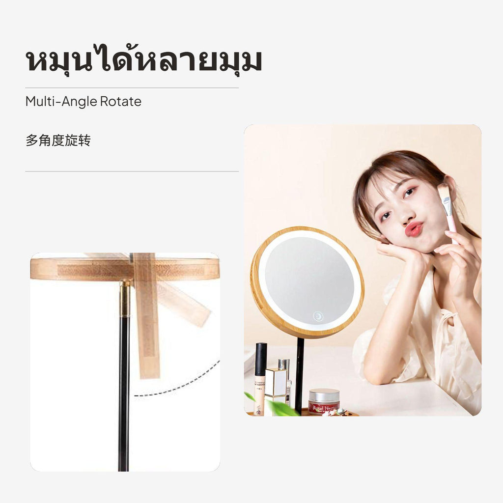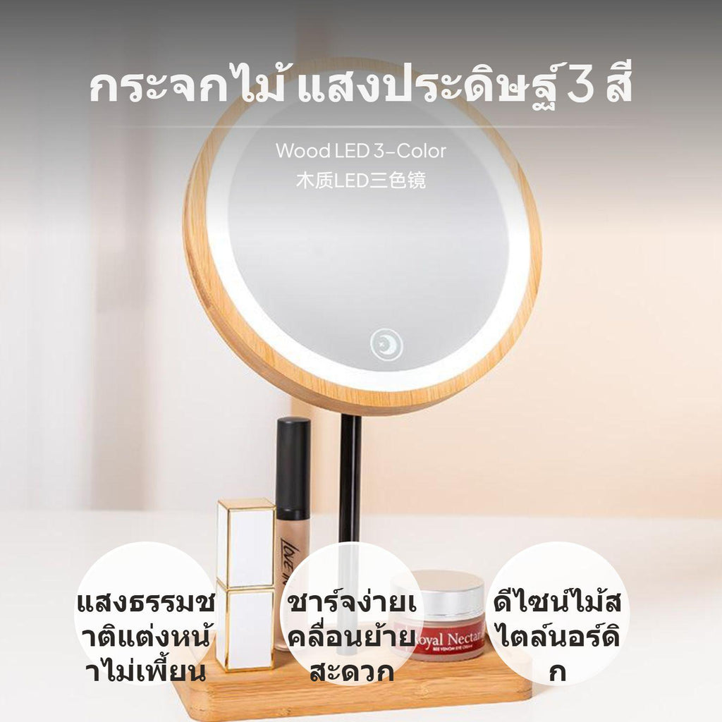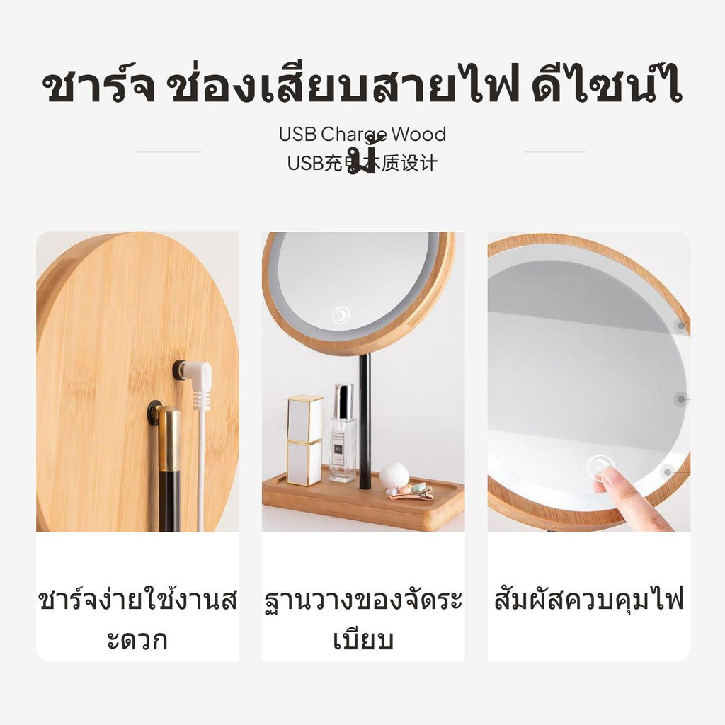 [light-emitting diode Lighting for Even Makeup] Featuring 360° light-emitting diode ring light, this makeup vanity mirror ensures balanced sunlight lighting, eliminating shadows and presenting natural makeup results consistently.[Natural Wooden design] The frame and base crafted from genuine wood create a warm, minimalist look, fitting seamlessly with bedroom, changing area, or any surface decor.[Clear Glass & Anti-Distortion] High-quality silvercoated glass provides a clear, distortionunrestricted reflection to help you perfect every nuance of your appearance regimen.[press Smart Controls & Rechargeable] Easy-to-use discreet press control panel lets you conveniently adjust lighting, while cordless rechargeable design allows unrestricted placement on any desk or vanity.[multifunctional and Practical] Not just a professional makeup mirror, the gentle light-emitting diode lighting works as a supplementary desk lighting fixture or soft light, making it an essential and stylish addition to your individual care tools.Specification: