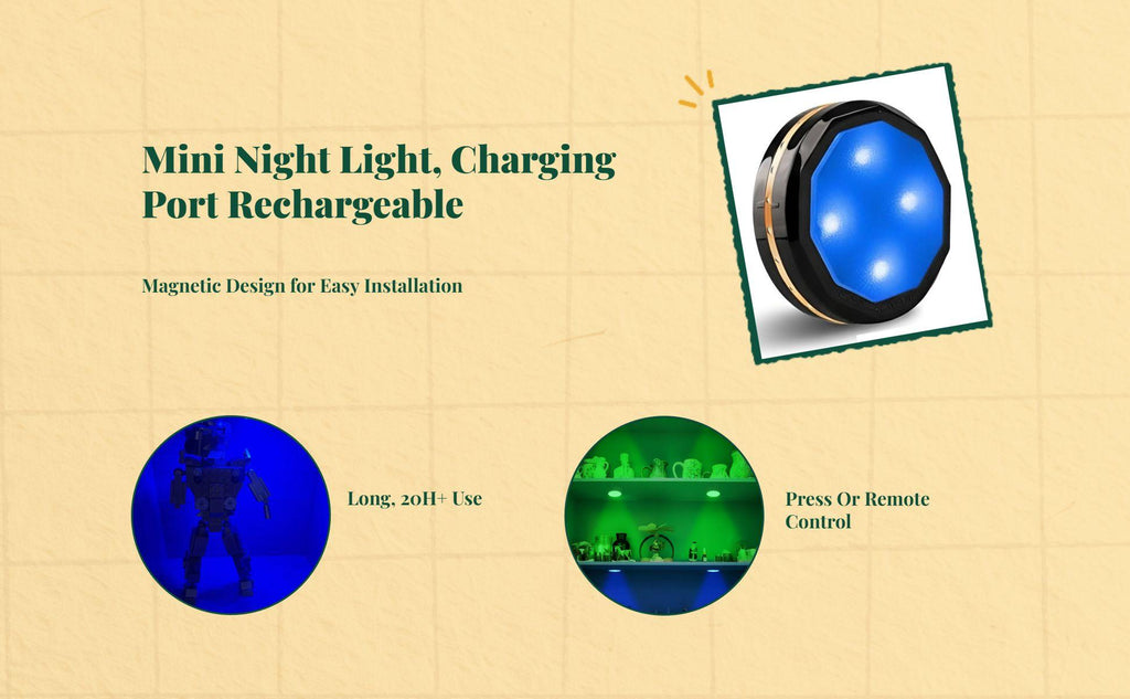 [Light-Emitting Diode Mini Night Light for Versatile Accent Lighting] This rechargeable light-emitting diode mini night light comes with remote control and easy installation, making it perfect for cabinets, bedrooms, and party decorations. Enjoy adjustable brightness and color-changing effects to create your perfect atmosphere. [ and Rechargeable Convenience] No wiring needed—simply recharge via the charging port and place it anywhere you want accent lighting, such as under cabinets, on display shelves, or inside bookcases. [Remote Control for Easy ] Effortlessly adjust brightness or toggle between RGB color modes with the included remote, perfect for setting the mood in kids’ rooms, hallways, or utility spaces. [Portable and Practical Design] small and lightweight, this mini night light is easy to move and install, suitable for home, parties, weddings, or indoor lighting requirements. [sturdy and Cost-Effective] Made with sturdy materials, this light-emitting diode night light offers dependable performance and great value for common use.