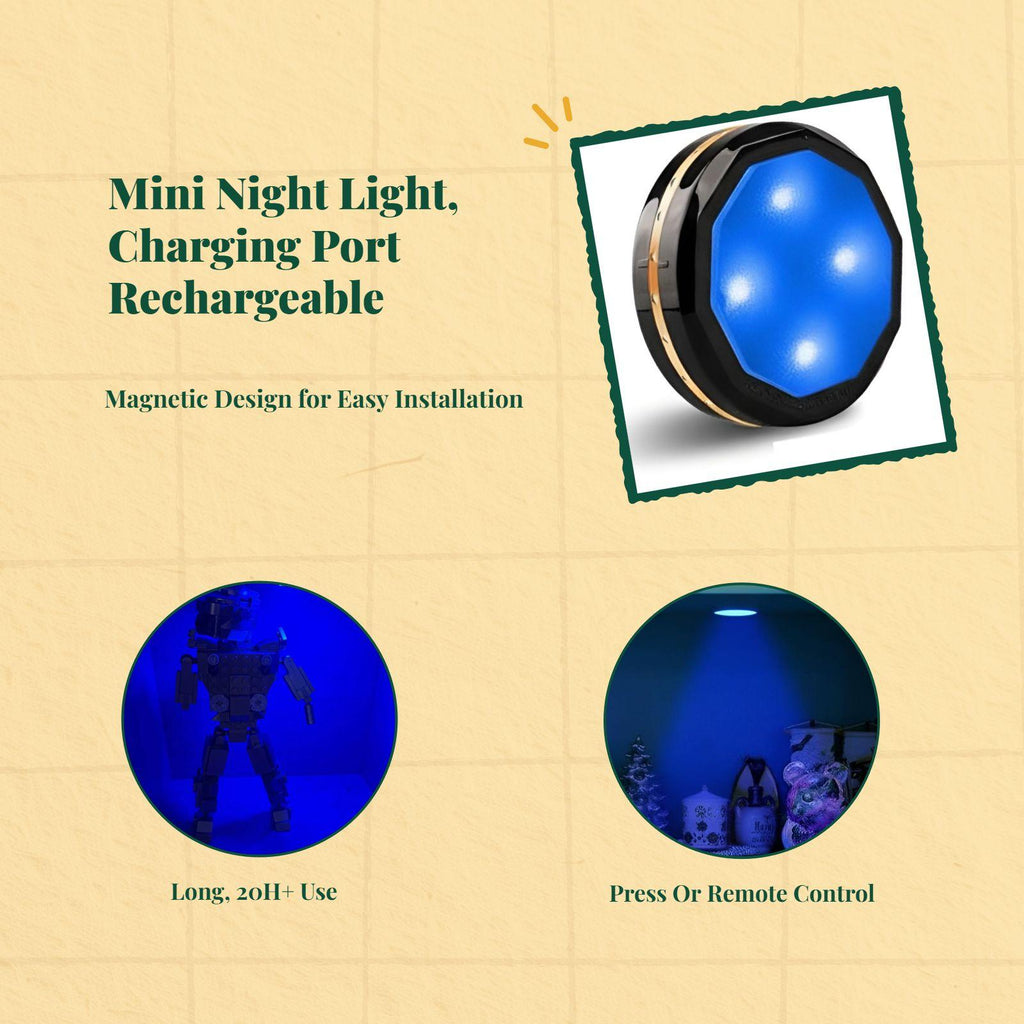 [Light-Emitting Diode Mini Night Light for Versatile Accent Lighting] This rechargeable light-emitting diode mini night light comes with remote control and easy installation, making it perfect for cabinets, bedrooms, and party decorations. Enjoy adjustable brightness and color-changing effects to create your perfect atmosphere. [ and Rechargeable Convenience] No wiring needed—simply recharge via the charging port and place it anywhere you want accent lighting, such as under cabinets, on display shelves, or inside bookcases. [Remote Control for Easy ] Effortlessly adjust brightness or toggle between RGB color modes with the included remote, perfect for setting the mood in kids’ rooms, hallways, or utility spaces. [Portable and Practical Design] small and lightweight, this mini night light is easy to move and install, suitable for home, parties, weddings, or indoor lighting requirements. [sturdy and Cost-Effective] Made with sturdy materials, this light-emitting diode night light offers dependable performance and great value for common use.