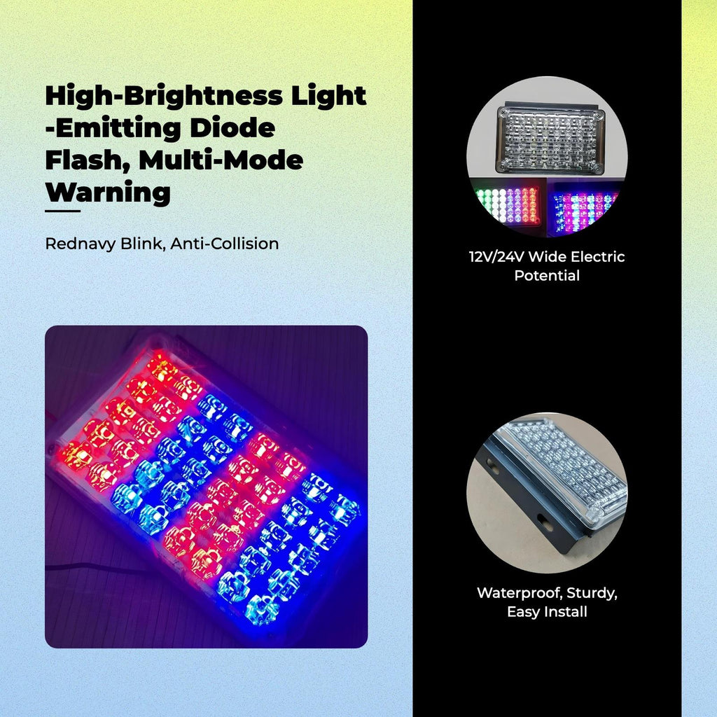[super Luminous light-emitting diode pulse Warning Light] Featuring high-brightness SMD light-emitting diode chips and a two-tone-tonetone color of red and blue, this light ensures high visibility and gaze-catching warning for vehicles, cars, and ATVs. [Waterproof and Sturdy Construction] Made with a PC housing and lens, this warning light is waterproof and perfect for outdoor use, delivering dependable performance in various weather conditions. [Multi-Mode & Quick begin] Equipped with 7 pulse modes and instant quick begin, it offers versatile pulseing choices for hazard, emergency, and warning situations. [Wide electrical potential Compatibility] Supports 12V-24V working electrical potential, making it suitable for vehicles, trailers, SUVs, construction vehicles, and more. [Easy Installation & Low Power Consumption] The surface-mount design allows easy installation, while low power consumption ensures effectiveness for long-term use.Specification: