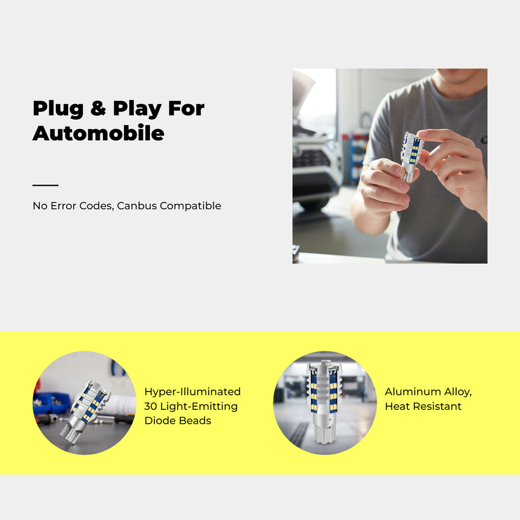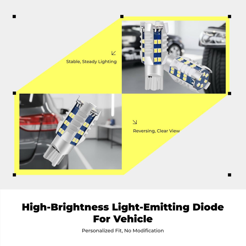 [Extreme Bright light-emitting diode Reverse Light for Automobiles] enhance your vehicle with this light-emitting diode reverse light, featuring high brightness and error performance for average-sized crossovers, SUVs, sedans, and more. perfect for night driving and challenging weather conditions. [High-Quality Aluminum Alloy] Built with a sturdy aluminum alloy this bulb offers efficient heat dissipation and extended lifespan, providing dependable lighting for your car’s backup and parking lights. [Easy Plug-and-Play Installation] Designed for quick replacement, this light-emitting diode bulb accommodates T15, 921, and 912 sockets for fast, hassle installation without the need for modifications. [360° Lighting & Enhanced Visibility] Equipped with 3030SMD light-emitting diode chips, this bulb delivers up to 400% more brightness and 360° lighting, greatly increasing visibility when reversing and parking. [Waterproof & CANBUS Ready] With IP68 waterproof and CANBUS compatibility, this bulb ensures stable performance in all weather conditions, making it a practical enhance for a variety of vehicle variant s.Specification:
