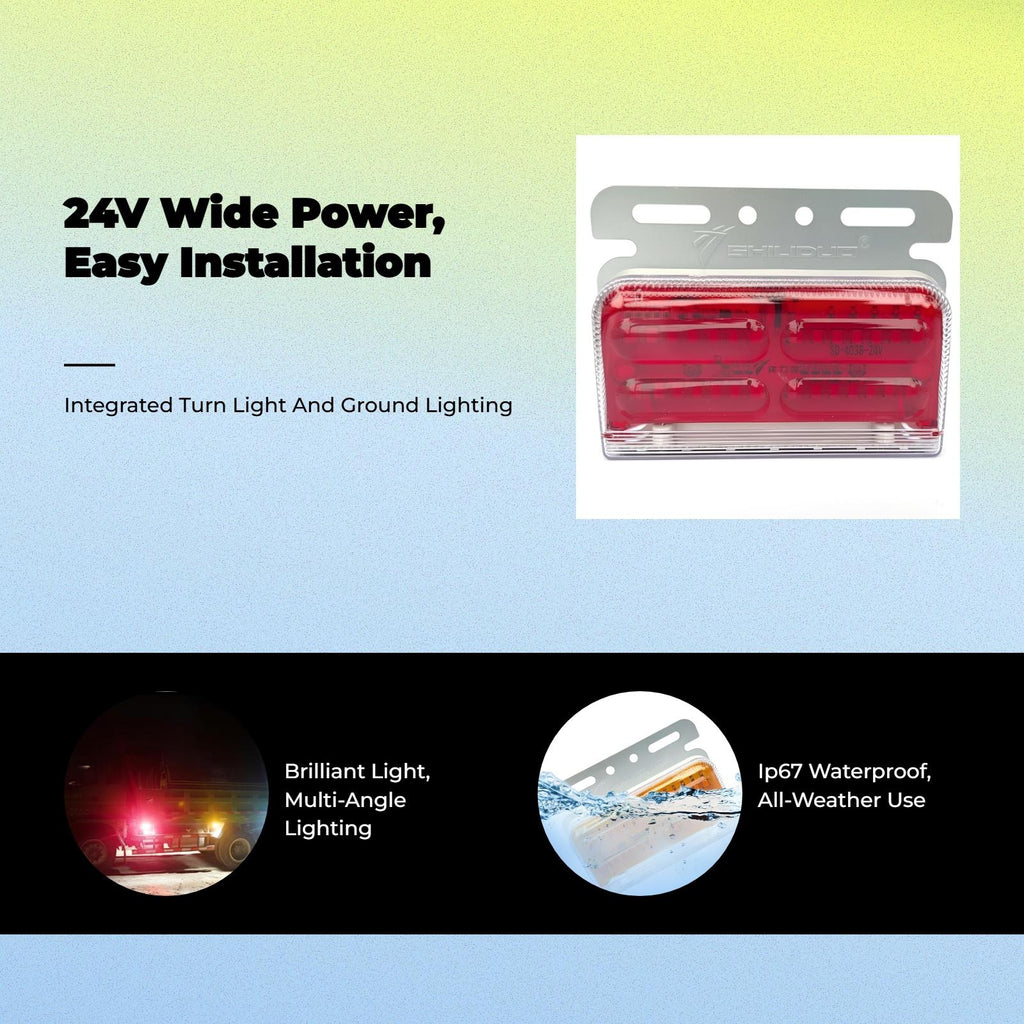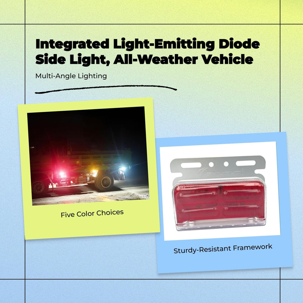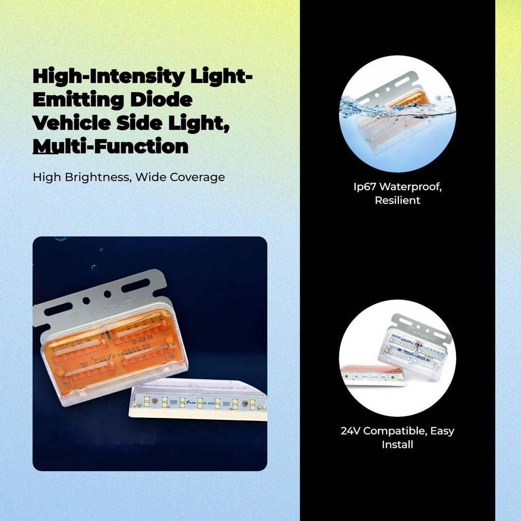 [Super Luminous light-emitting diode Side Marker Light] Enhance visibility for vehicles and trailers with this 24V light-emitting diode side marker light, featuring highbrightness brightness and a waterproof design for dependable performance in all weather conditions. [Waterproof and sturdy] Engineered with a sealight-emitting diode light-emitting diode housing, this side marker light is waterproof and dustproof, ensuring long use and stable even in harsh environments. [Multi-Functional Application] perfect for vehicles, trailers, RVs, and semi-trailers, this light functions as a side marker, clearance light, and turn flasher, offering versatile lighting alternatives for a range of vehicles. [Easy Installation] The surface-mounted design allows for quick and hassle installation, making it a practical enhancement or replacement for existing vehicle lights. [Practical and Cost-Effective] Made from high-quality materials, this light-emitting diode side marker light delivers practicality and value, meeting the demands of professional motorists and fleet motorists.Specification: