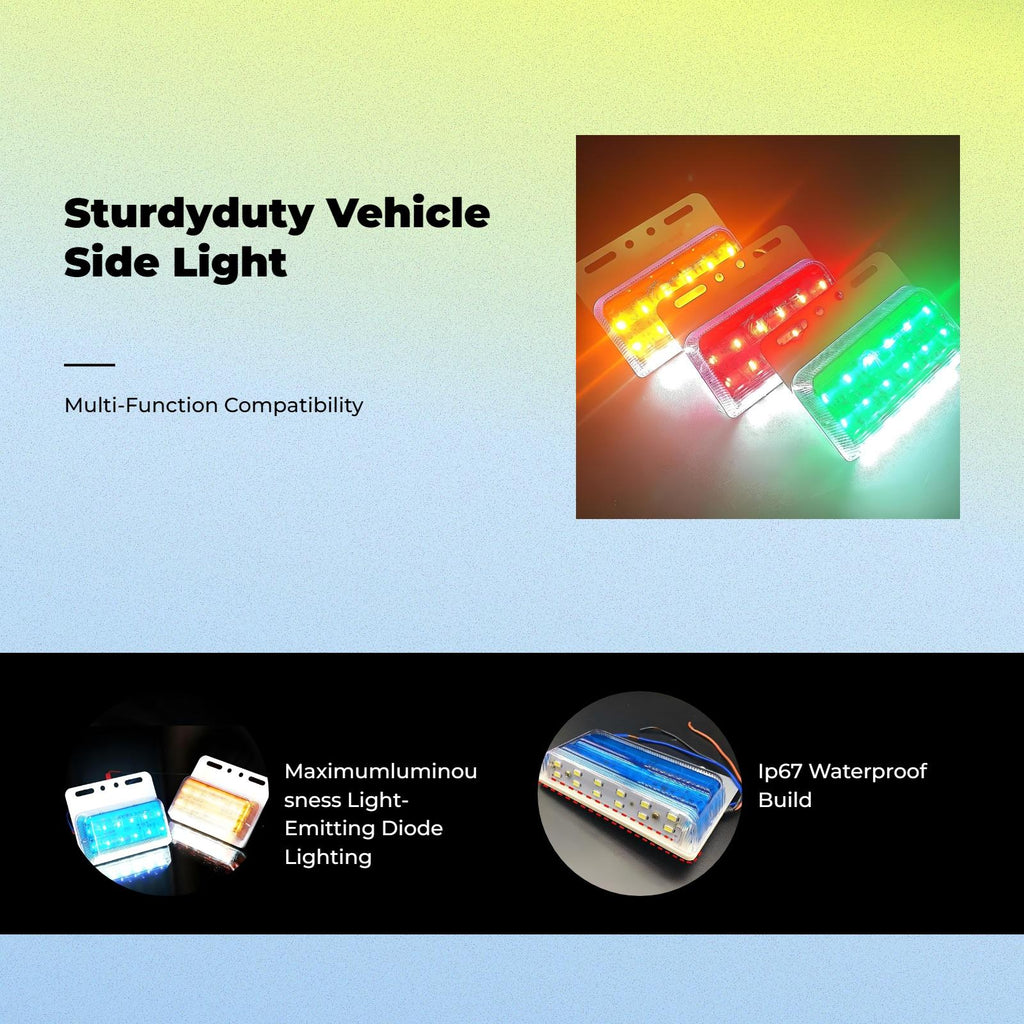 【light-emitting diode Side Marker Light for lorries and Carriers】This 24V water-resistant light-emitting diode side marker light provides extremely bright brightness to enhance visibility during nighttime driving, awayhighway adventures, and freight transport.【sturdy and dependable Construction】Built with an aluminum alloy and PC cover, this light is explosion-resistant, particlesresistant, and highly resilient, ensuring long performance in various environments.【Versatile Installation for Multiple Vehicles】perfect for lorries, carriers, pickups, and SUVs, the flexible mounting choices allow for easy installation on flatboards, undercarriages, or alongside tires.【High Practicality and Cost-Effectiveness】Engineered for high-power lighting and stable current, this side marker light delivers both value and practical use for commercial and individual vehicles.【Extended Lifespan and sophisticated Features】Boasting a lifespan of up to 20,000 hours, an IP67 waterdurability and an anti-fall design, this light promises dependable and improved on the highway.