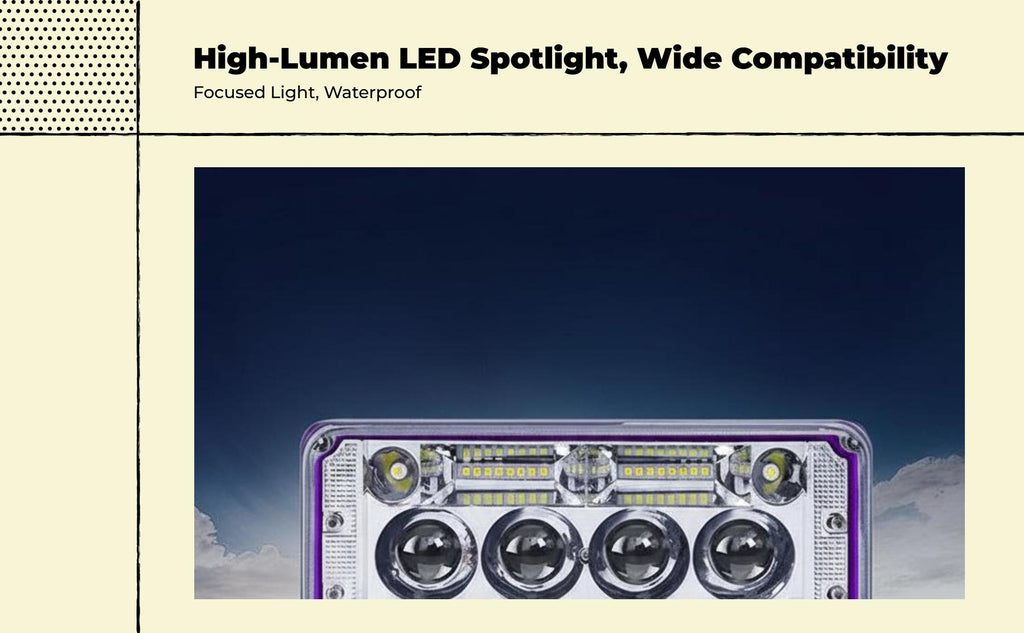 【super Bright light-emitting diode Spotlight for Universal Vehicles】This light-emitting diode spotlight provides high brightness and focused brightness, suitable for cars, lorries, motorcycles, and electric vehicles. The IP67 waterproof and aluminum alloy housing ensure dependable performance in various outdoor and awaytrail environments. 【sturdy Aluminum Alloy Construction】Made with sturdy aluminum alloy, this spotlight awayers heat dissipation and long durability, supporting up to 50,000 hours of use. 【Wide electrical potential Compatibility】Compatible with both 12V and 24V systems, it is perfect for a btrail range of vehicles, including lorries, motorcycles, ATVs, and awaytrail vehicles. 【Easy Installation and Versatile Use】Designed for DIY installation, this spotlight can be used as a driving light, fog light, or auxiliary light, improving brightness and visibility during night driving or in adverse weather conditions. 【Practical and Cost-Effective Lighting Solution】Combining high performance, universal compatibility, and energy effectiveness, this light-emitting diode spotlight is a practical choice for upgrading your vehicle's lighting.Specification:
