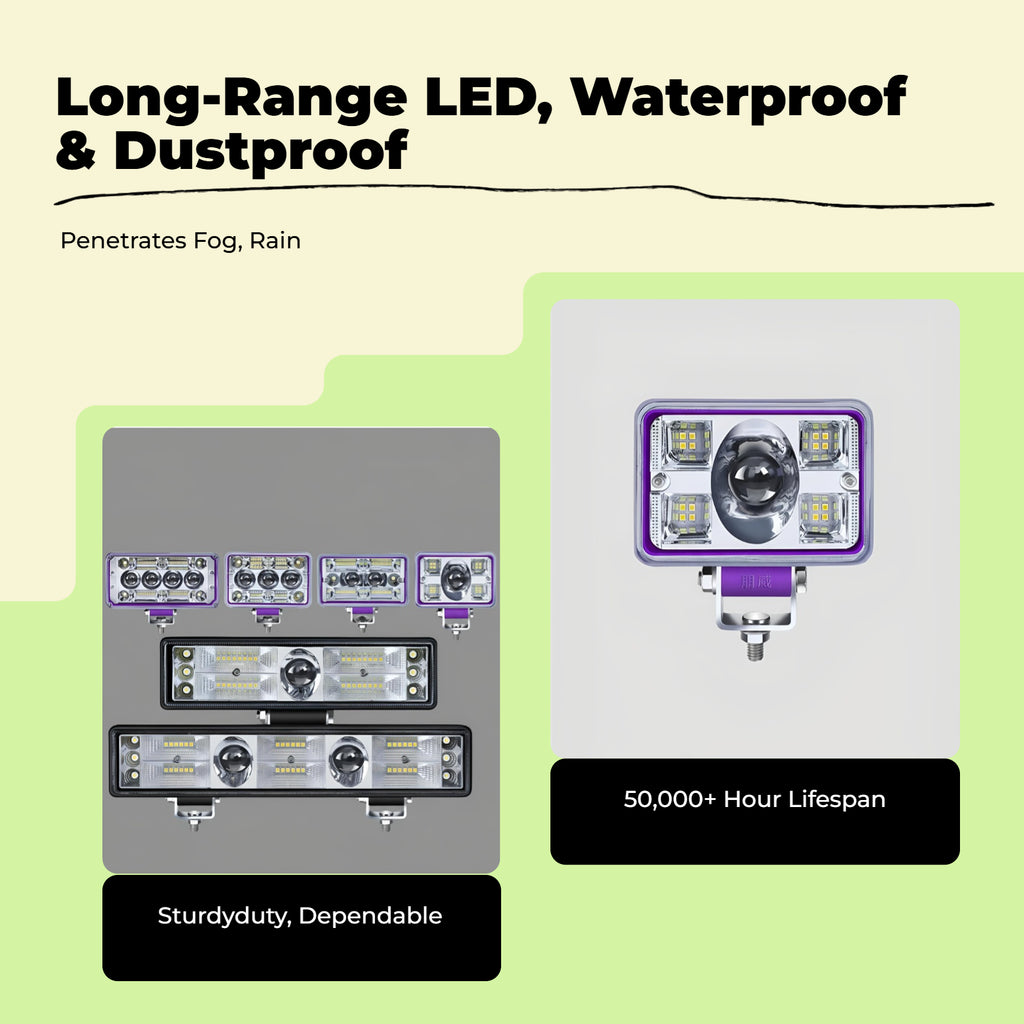 Light-emitting diode spotlight, high intensity, IP67 waterproof, aluminum alloy, 12V/24V, universal car, lorry, and motorcycle light Purple 3 inch