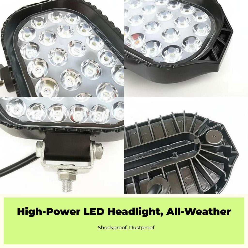 Light-Emitting Diode Spotlight, Universal 12V-80V, Waterproof, Emergency Warning, Automotive Square 14x7.8cm