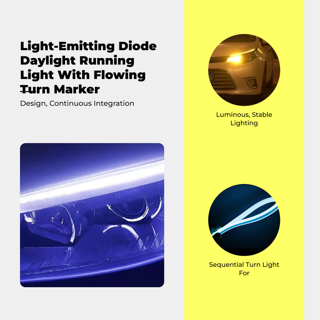 【Adaptable light-emitting diode daybeam 】These flexible light-emitting diode daybeam feature APP control and a dynamic turn alert function, making the lights perfect for car exterior decoration and improving during nighttime driving.【High-Quality sturdy】Crafted from light-emitting diode materials, this light strip is water-resistant and debris-resistant, providing dependable performance even in harsh weather conditions.【Energy Efficient & Bright】Designed for low power consumption with high brightness, it delivers clear visibility while conserving your vehicle’s energy.【Easy Installation & Universal Fit】The flexible design makes installation simple for various car vehicle, making it suitable for DIY enhancements and upgrades.【Multiple Lighting Modes】Supports a range of lighting effects, including ice blue streaming and sequential turn indicators, perfect for adding a stylish accent and enhancing your driving experience.Specification: