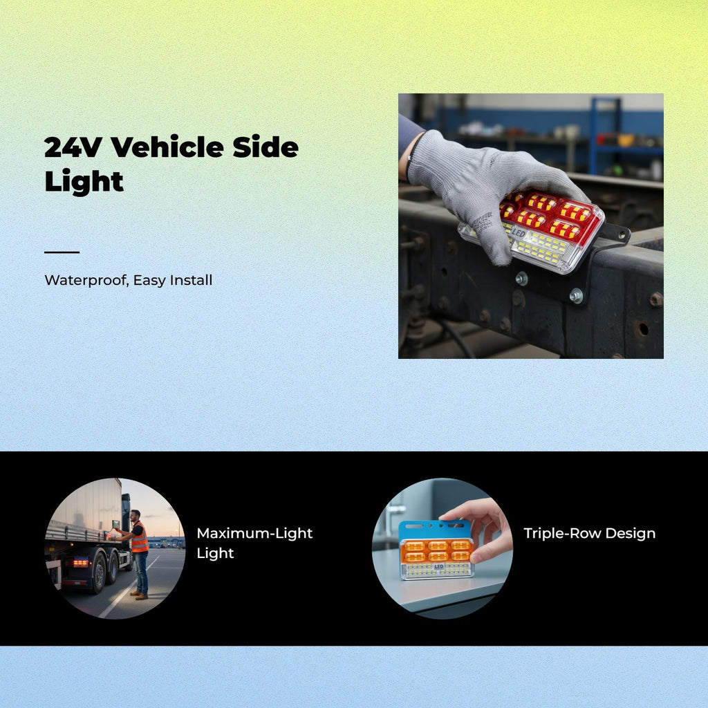 [Extremely Bright light-emitting diode Vehicle Side Marker Light] This 24V waterproof light-emitting diode side marker light delivers powerful brightness to improve visibility for large vehicles, lorries, and RVs. Its radiant shine design ensures your vehicle remains visible in low-light conditions. [sturdy and Waterproof Design] Featuring IP67 waterproof and shockproof materials, this side marker light is built to endure harsh weather and highway conditions, making it perfect for longtransport vehicles and lorries. [Versatile Application for Multiple Vehicles] Suitable for semicommercial vehicles, trailers, RVs, and special vehicles, this light-emitting diode side marker light can be used as a turn marker, clearance light, or ground light for added and functionality. [Easy Installation and Secure Mounting] Designed with a universal mount and robust sealing, this side marker light is easy to install on various vehicle style s, ensuring a secure and stable fit for long-term use. [Energy Efficient and Long] Equipped with cutting-edge light-emitting diode chips, this side marker light consumes less power, generates less heat, and provides a long functionality life, offering value and reliability for your vehicle lighting needs.Specification: