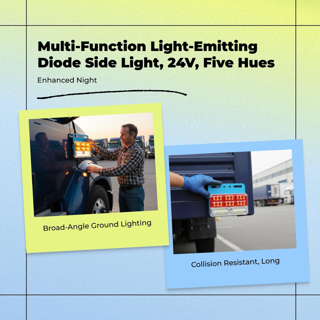 [Extremely Bright light-emitting diode Vehicle Side Marker Light] This 24V waterproof light-emitting diode side marker light delivers powerful brightness to improve visibility for large vehicles, lorries, and RVs. Its radiant shine design ensures your vehicle remains visible in low-light conditions. [sturdy and Waterproof Design] Featuring IP67 waterproof and shockproof materials, this side marker light is built to endure harsh weather and highway conditions, making it perfect for longtransport vehicles and lorries. [Versatile Application for Multiple Vehicles] Suitable for semicommercial vehicles, trailers, RVs, and special vehicles, this light-emitting diode side marker light can be used as a turn marker, clearance light, or ground light for added and functionality. [Easy Installation and Secure Mounting] Designed with a universal mount and robust sealing, this side marker light is easy to install on various vehicle style s, ensuring a secure and stable fit for long-term use. [Energy Efficient and Long] Equipped with cutting-edge light-emitting diode chips, this side marker light consumes less power, generates less heat, and provides a long functionality life, offering value and reliability for your vehicle lighting needs.Specification: