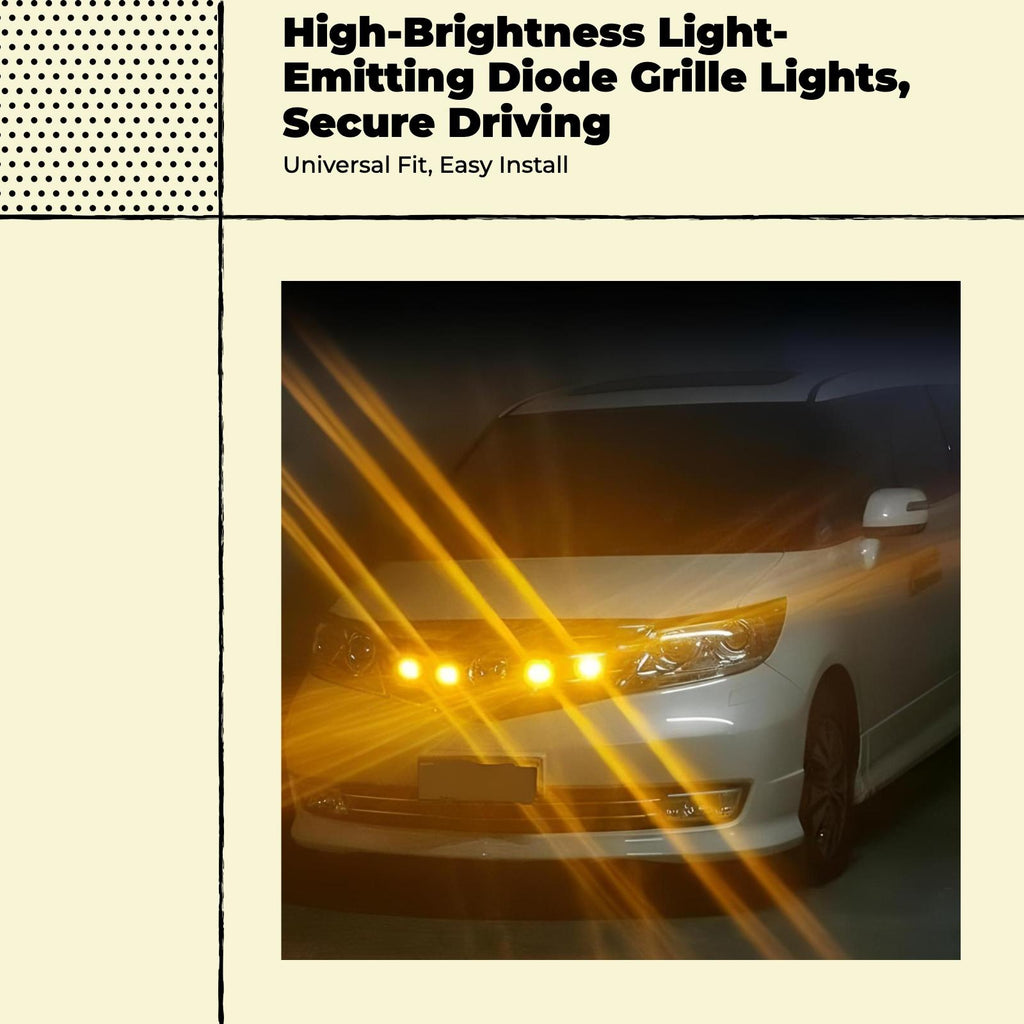 【Enhanced Visibility and Safety】The light-emitting diode yellow grille light delivers a strong warning effect and increased visibility for cars, SUVs, and awaypath vehicles, helping ensure secure driving in all conditions.【Waterproof and Resilient Design】Made from high-quality ABS and metal materials, this grille light is waterproof and weather-resistant, making it suitable for any weather or path condition.【Universal Fit and Easy Installation】Compatible with most pickup vehicles, SUVs, and awaypath vehicles. Its plug-and-play design allows for quick and easy installation.【Practical and Decorative】Combining practical warning and daytime lighting running light functions with a stylish decorative look, it boosts both your vehicle’security and visual appeal.【High Cost-Performance】awayers dependable performance and a long maintenance life, making it a cost-effective enhancement for your vehicle’s lighting system.
