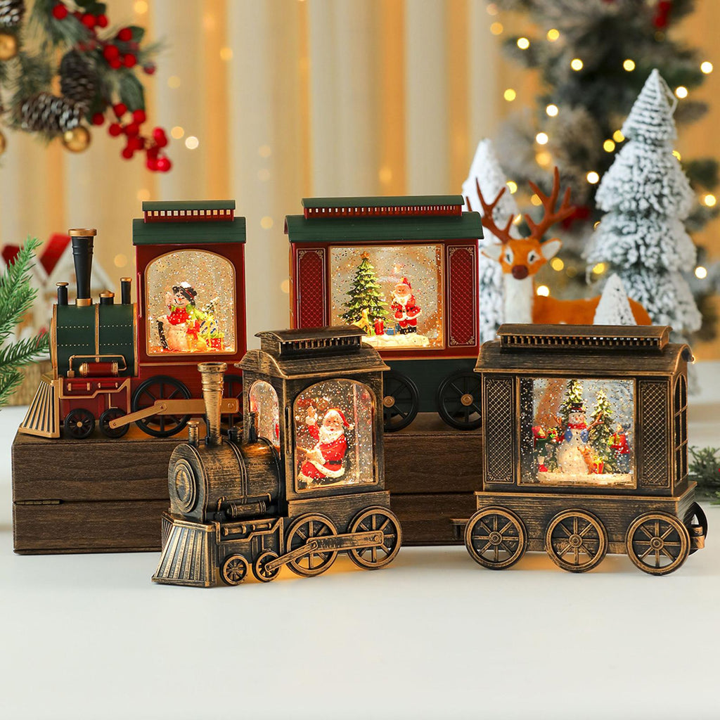 - 【Christmas themed design】: This lighted Christmas snow globe features a classic Christmas design with 2 train sections, Santa , and snowman decorations, adding a warm, festive atmosphere to your space