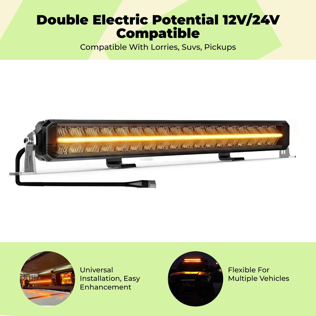【Lighting Strip Bar for All-Terrain and Vehicles】This lighting strip bar offers powerful brightness for all-terrain vehicles, cars, and SUVs, improving visibility in low light and foggy conditions.【Waterproof and resilient】Thanks to its waterproof design and sturdy aluminum housing, this driving light is built to endure harsh weather and rough terrain, ensuring enduring reliability.【ring Ring Design with High Brightness】Featuring ring ring yellow and alabaster lighting, the bar provides versatile lighting choices for different driving scenarios, including fog and nighttime.【Easy Installation and Wide Compatibility】Compatible with 12V and 24V systems, this lighting strip bar suits a variety of vehicles including cars, ATVs, pickups, vans, and campers.【Practical and Cost-Effective】Blending high quality with strong practicality, this light bar delivers exceptional value for vehicle upgrades and modifications.