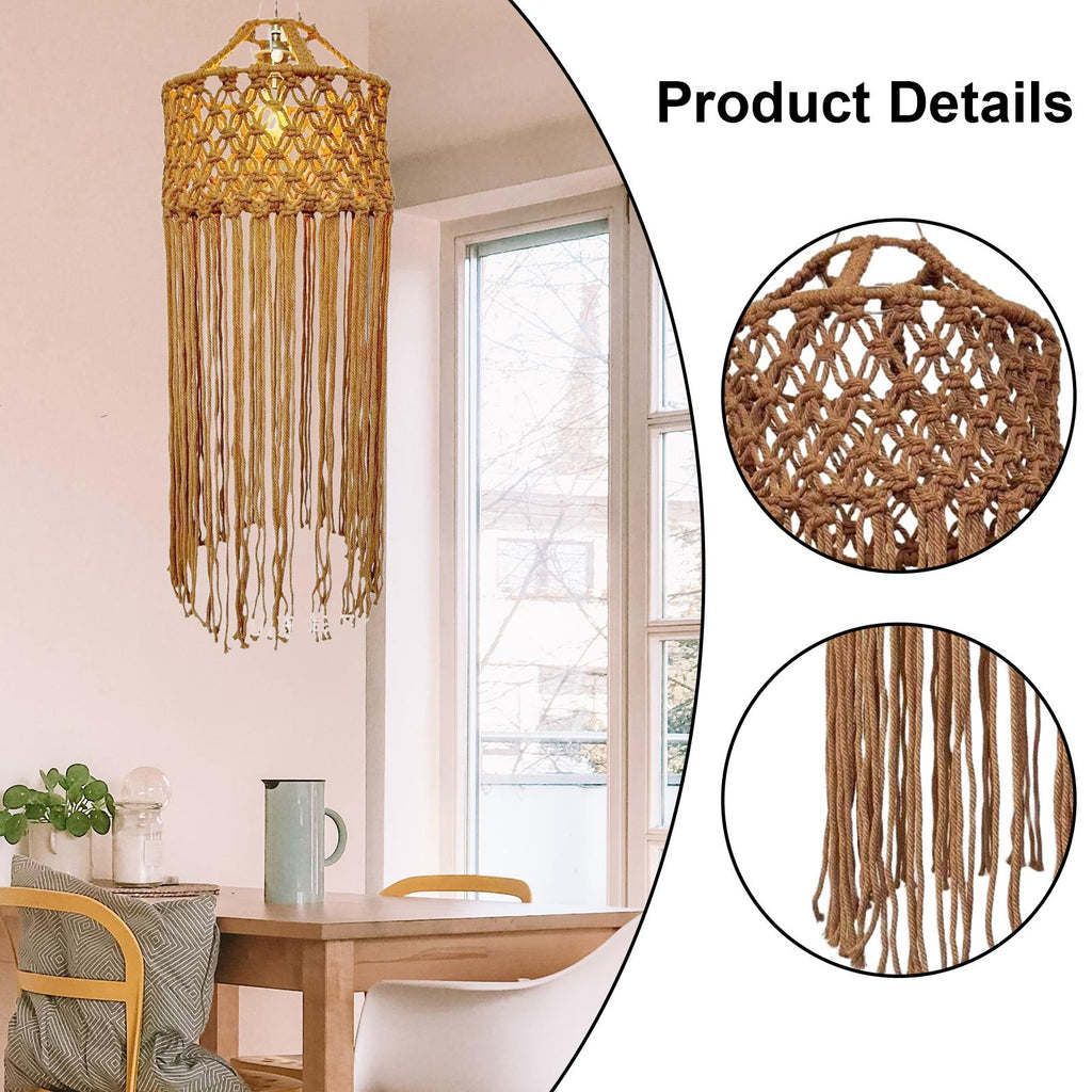 Maxbell Macrame Lamp Shade Pendant Ceiling Light Cover for Living Room Hotel Bedroom