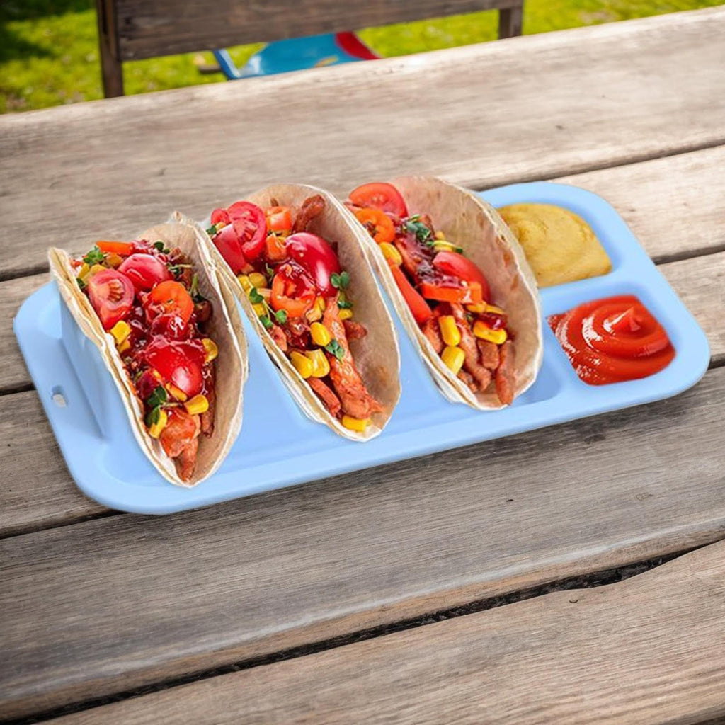 【Efficient Taco Organization】: This silicone taco holder is designed to keep your tacos upright with three sturdy dividers, making it easy to fill and enjoy without the mess