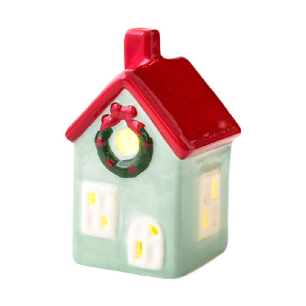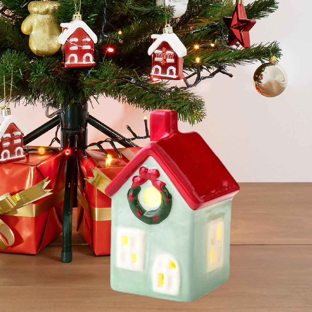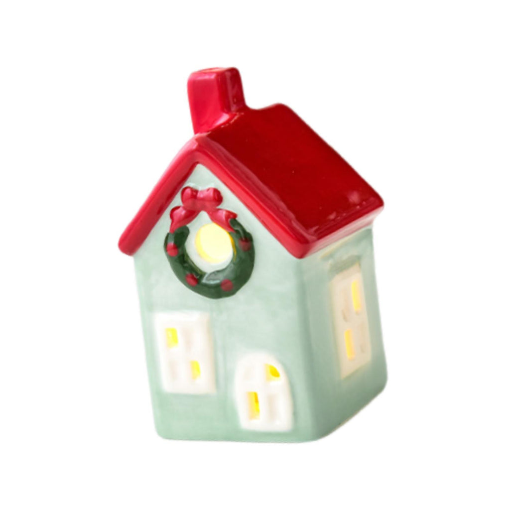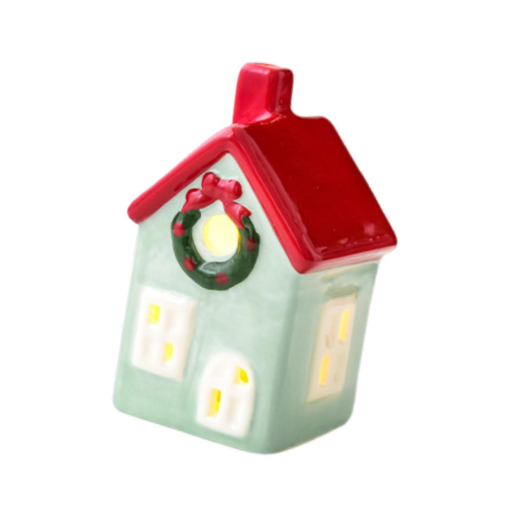 Mini Ceramic Christmas House Decoration for Shopping Center Living Room Xmas Light Green House