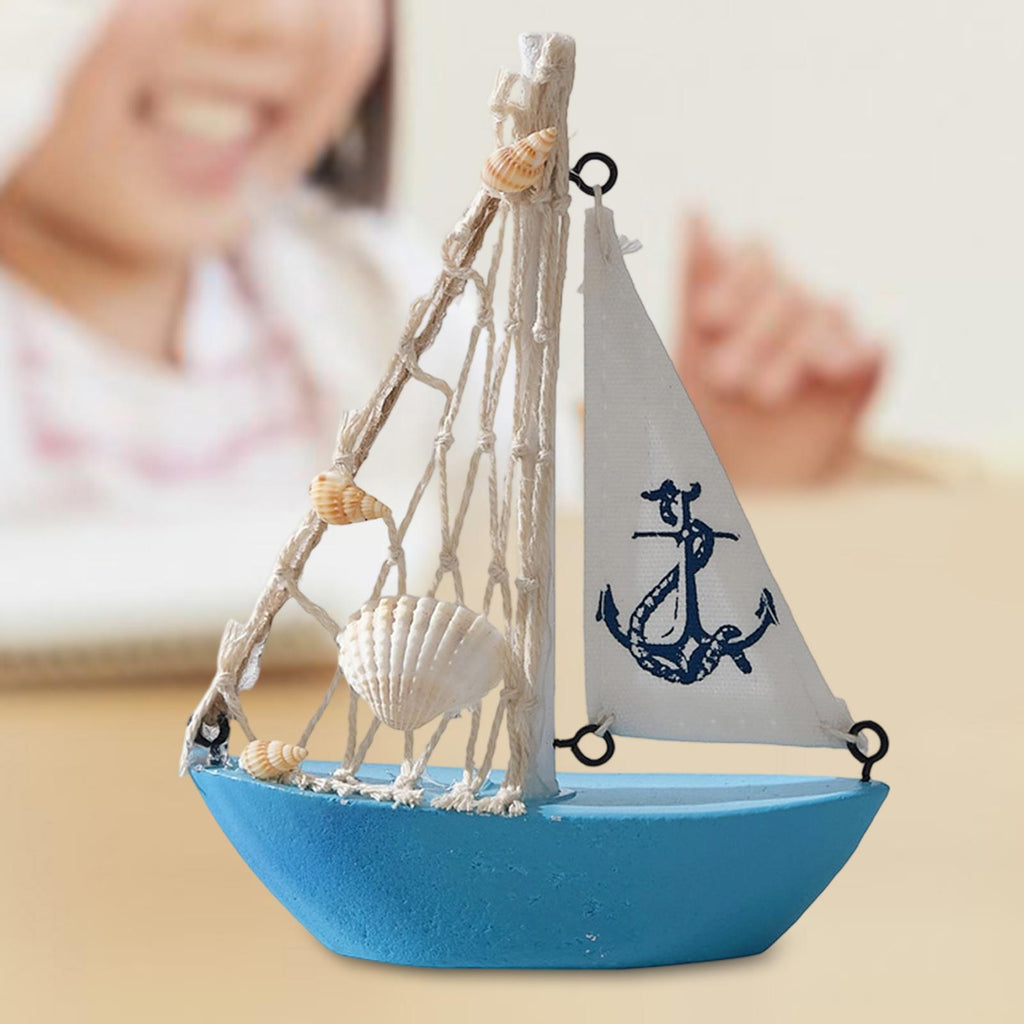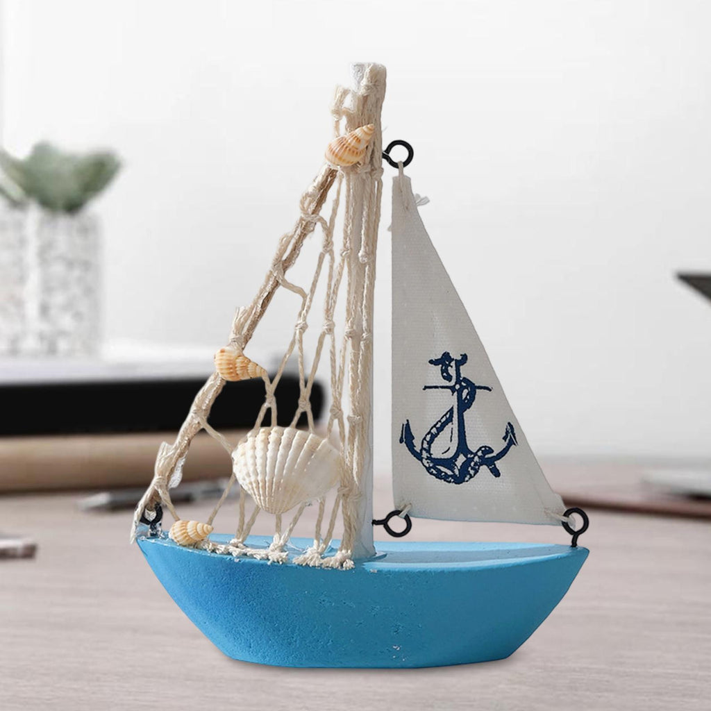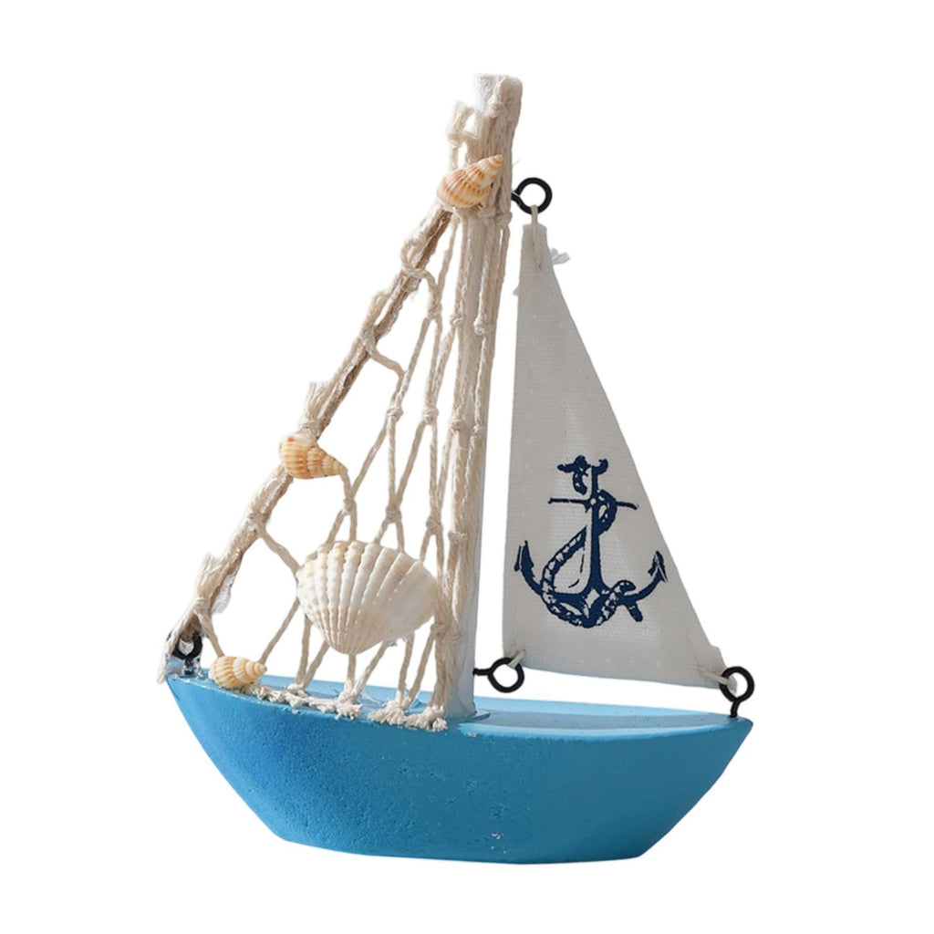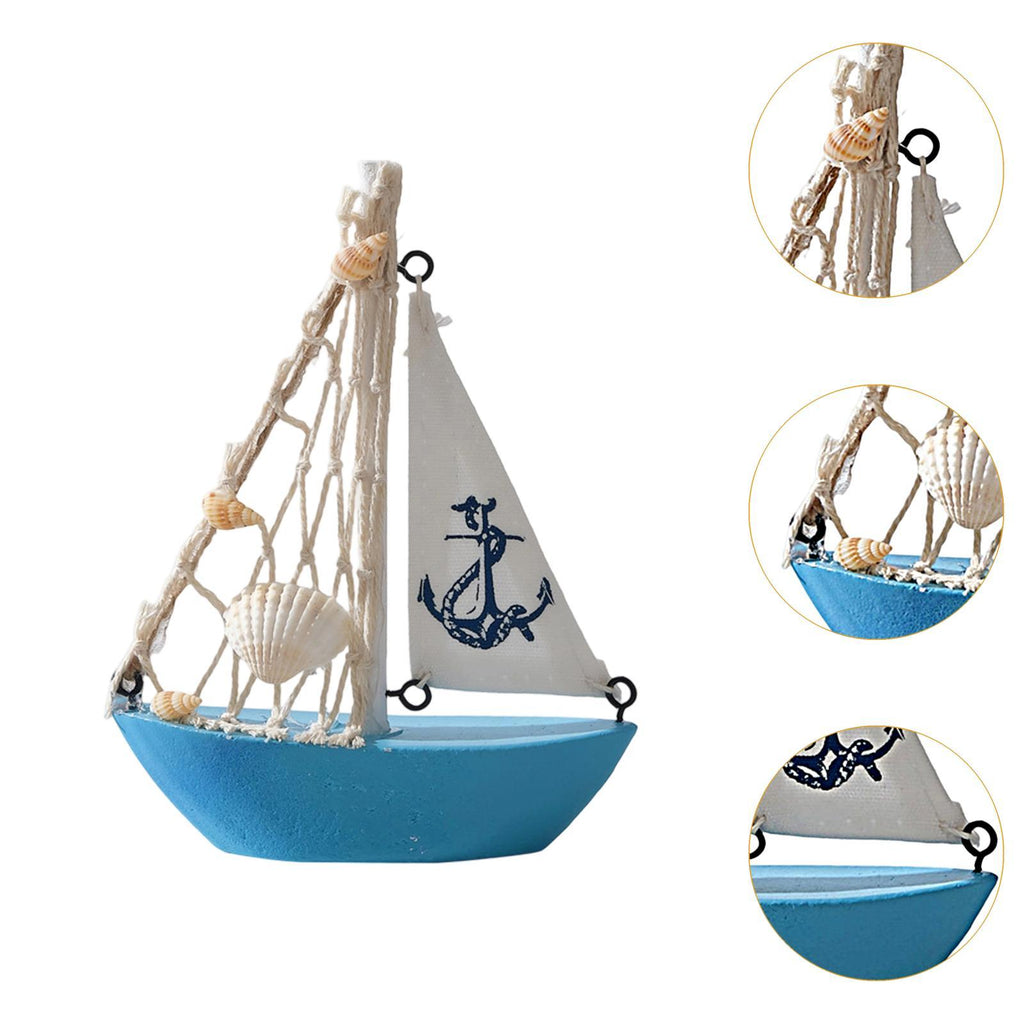 Maxbell Mini Sailboat Model Decoration Art Beach Nautical Design for Bookshelf Table Light Blue