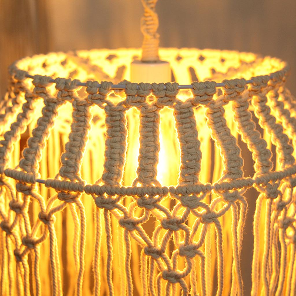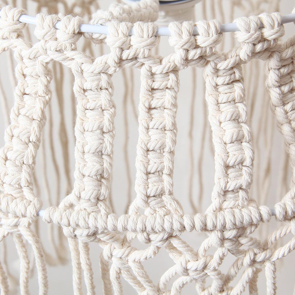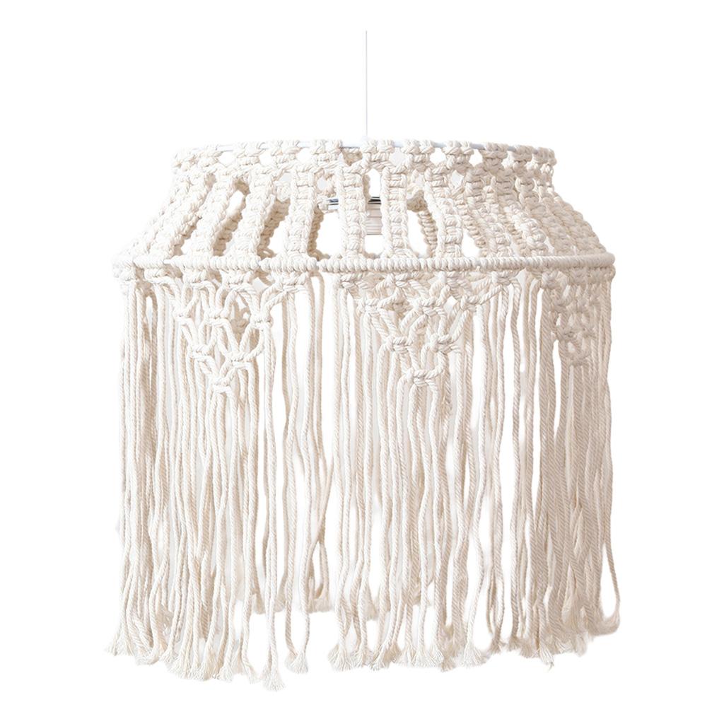 - This beautiful macrame lamp shade made with cotton rope and by unique design. This unique and elegant design will bring a bohemian atmosphere to your room and beauty your space.