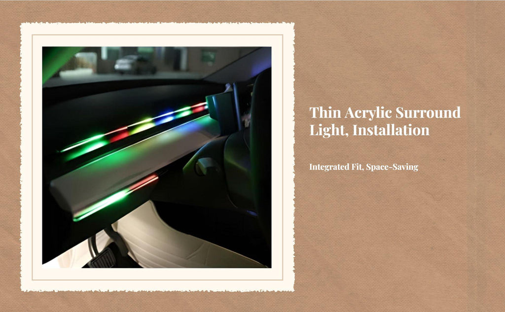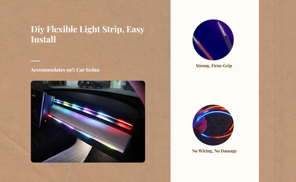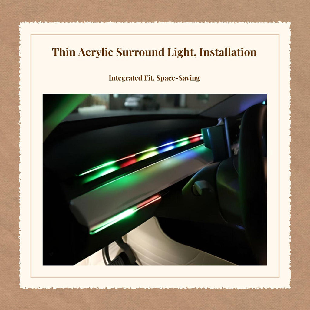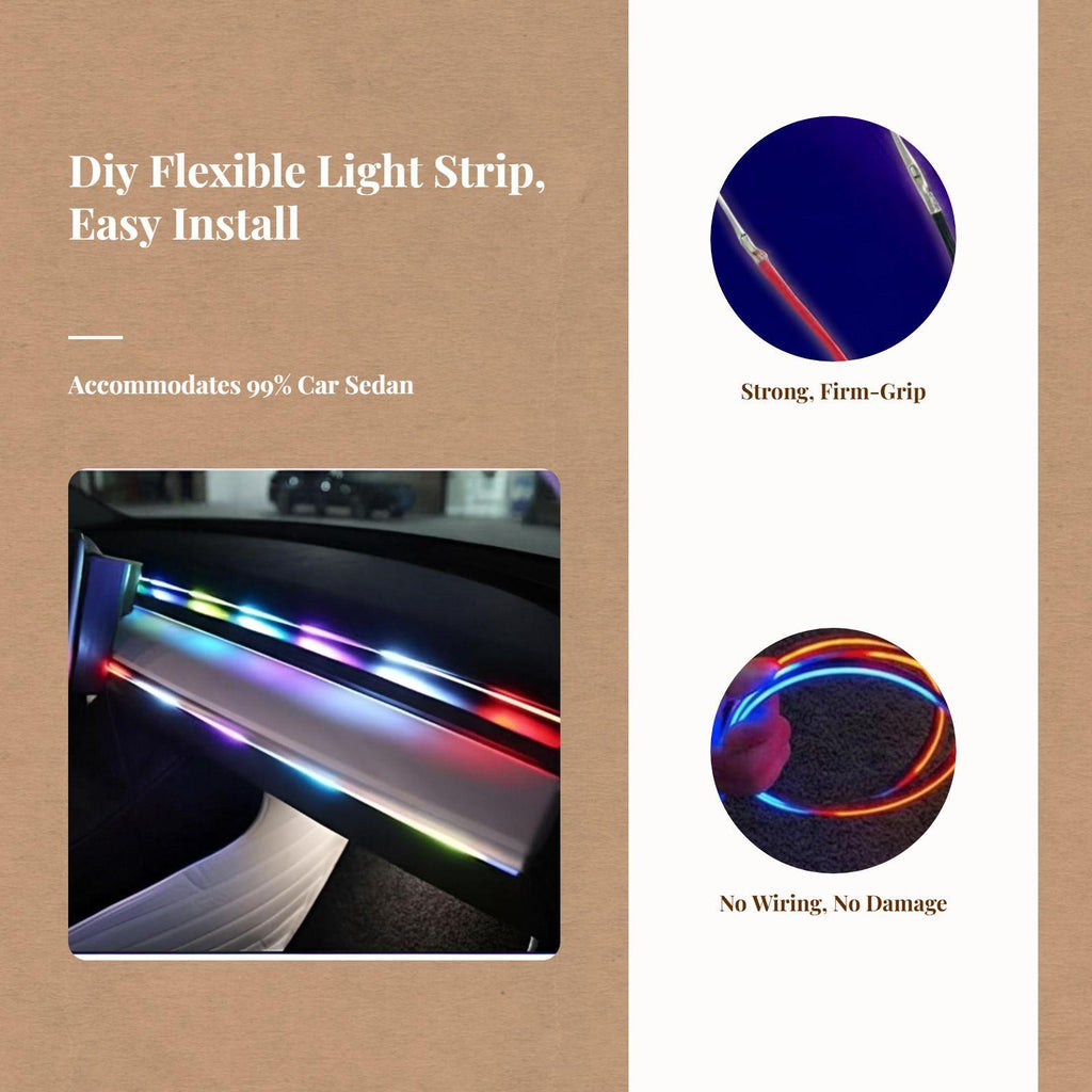 [Animated Mood Lighting for Car Interior] Enhance your vehicle with this acrylic light-emitting diode strip kit, featuring RGB color changing and animated lively chasing effects for a stylish atmosphere. [Thin Flexible Design] The 0.08in thin acrylic strip sits discreetly in the dashboard, footwell, or four doors, elevating your car's interior aesthetics without adding bulk. [Smart App Control & Music Sync] Easily adjust hues, brightness, and modes via the app; sync the lights with music for a personalized driving experience. [Universal Compatibility & Easy Installation] Suitable for most cars, powered by port, waterproof (IP65), and simple for DIY hobbyists to install. [resilient Practical Value] Made from resilient PMMA acrylic, this kit offers practicality and cost-effectiveness for long-term use.Specification: