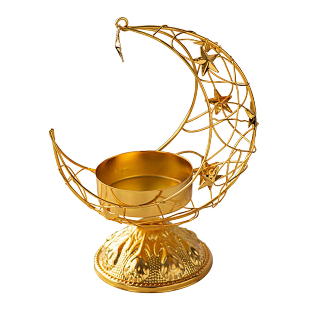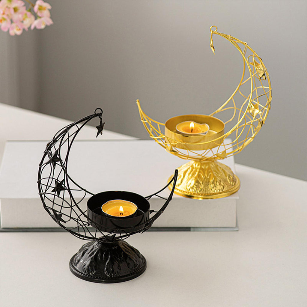 Maxbell Moon Shaped Tea Light Candle Holder Candle Stand for Wedding Decor Reusable Star Golden