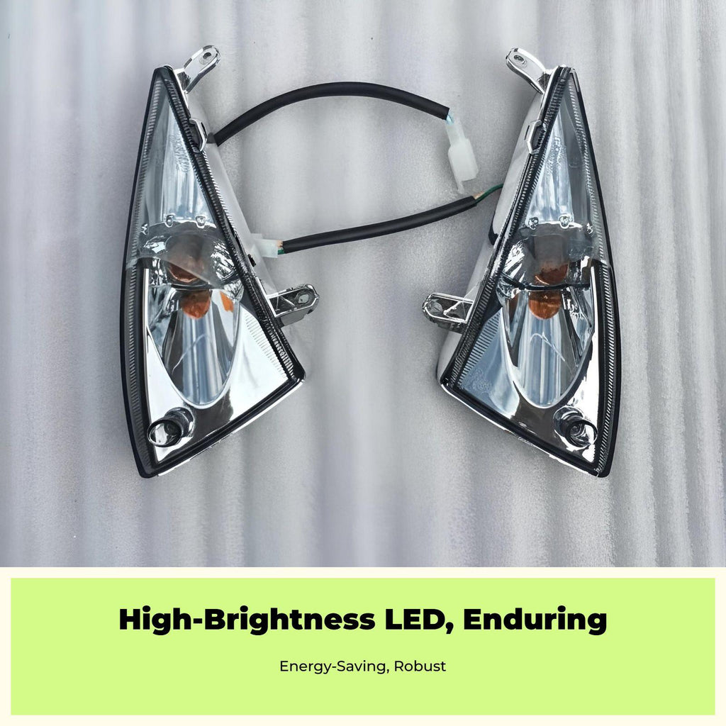 "translated_text": "[Enhanced Visibility and Safety] This motorcycle headlight assembly with integrated light-emitting diode turn indicators delivers clear lighting and improved visibility for nighttime riding and challenging weather conditions. [Sturdy Waterproof Construction] Crafted with a robust ABS housing and waterproof design, this headlight and turn marker set is engineered to endure frequent use and tough environments. [Easy Installation and Universal Fit] Designed for effortless installation, this assembly is compatible with GY6 scooters and similar electric motorcycles, making it perfect for upgrades or replacements. [Energy Efficient and enduring] Low power consumption light-emitting diode lights provide bright, dependable lighting with a long maintenance life, minimizing the need for frequent replacements. [Perfect for Modification and Replacement] perfect for customizing your motorcycle or replacing damaged parts, this assembly enhances both the appearance and functionality of your vehicle."Specification:
