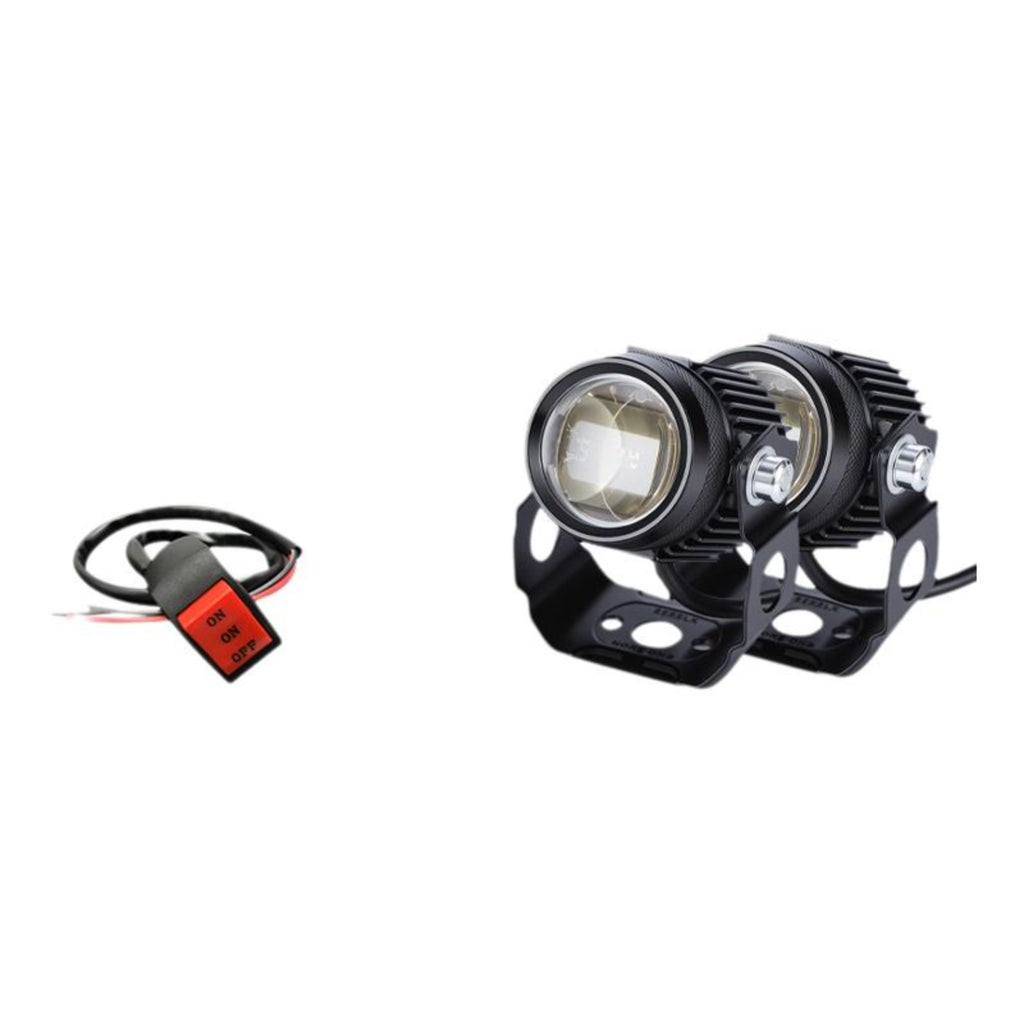 Motorcycle light-emitting diode Headlight, brilliant Spotlight, 12V Lens, Waterproof, Universal Fit, Aluminum Alloy, Long Lifespan Yellow White 2pcs With Switch